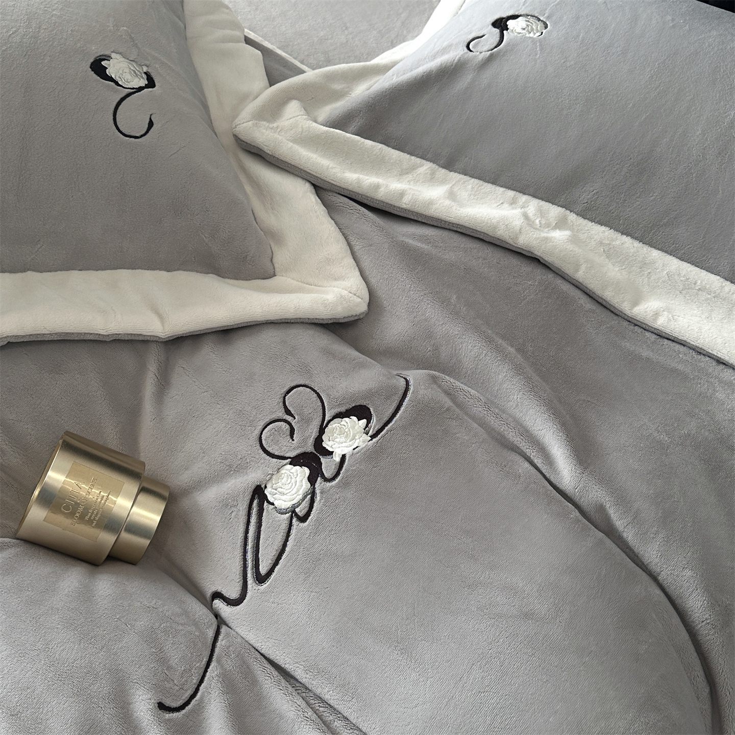 南泉坊 2025新款230克AB版牛奶绒四件套-花清影 会员-20【线上控价不低于328,券后不低于298】 花清影--灰