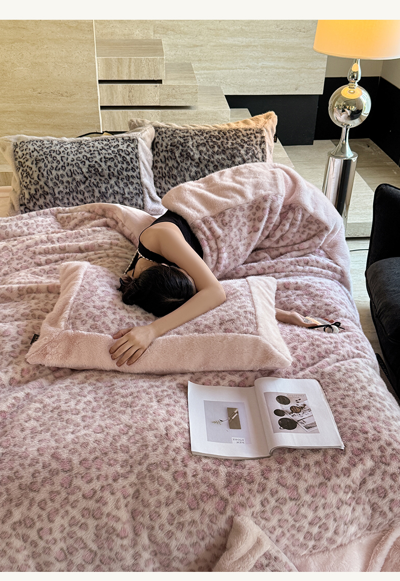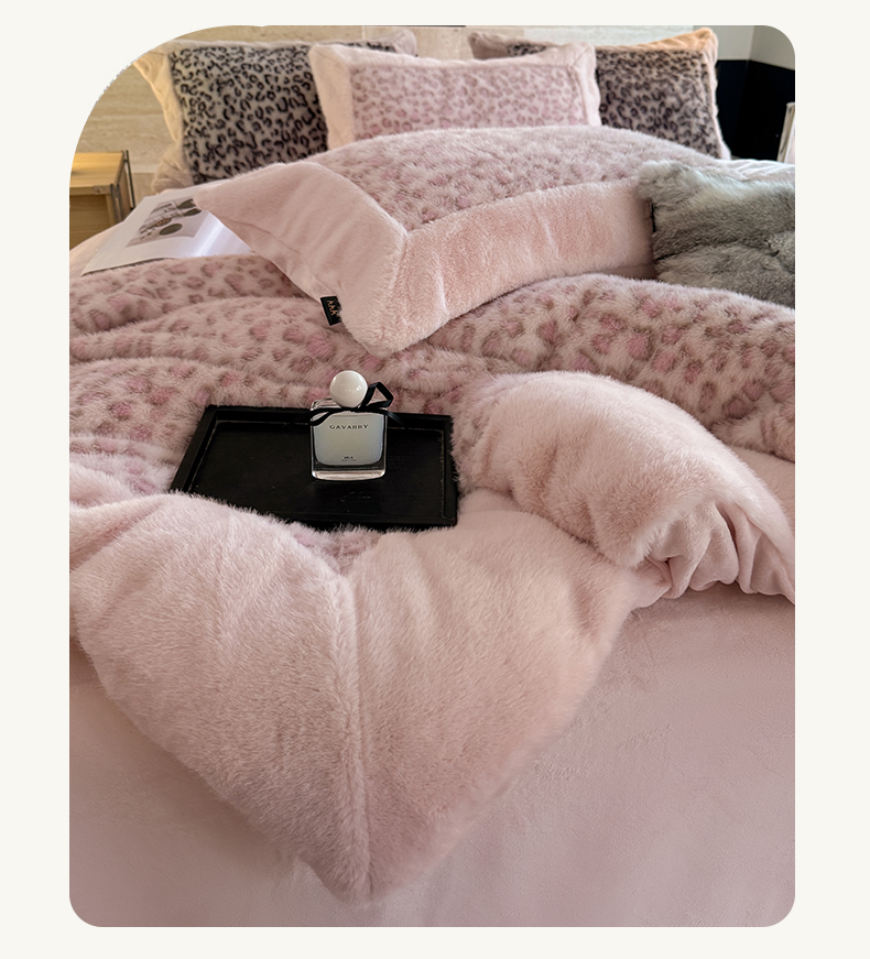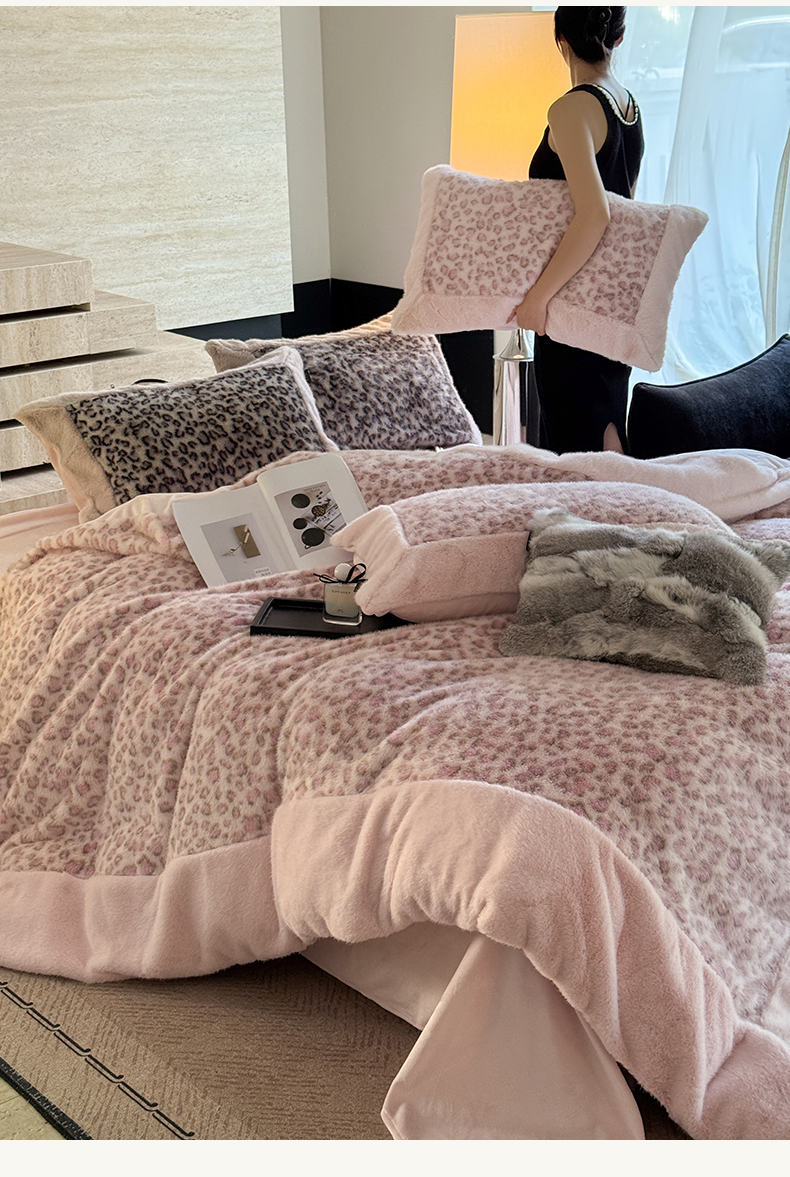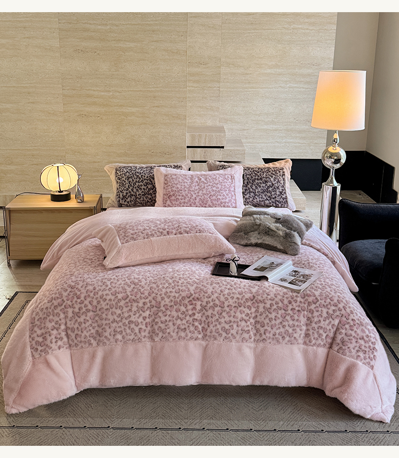 商品名称:水云缦 2025新款水貂绒豹纹四件套 豹纹-粉红豹