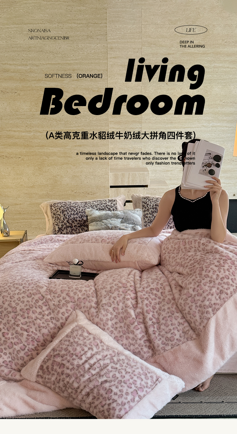 (总)水云缦 2025秋冬新品·法式轻奢水貂绒全消牛奶绒工艺款大拼角四件套,豹纹-金钱豹,豹纹-波斯豹,豹纹-粉红豹,豹纹-美洲豹,豹纹-雪豹