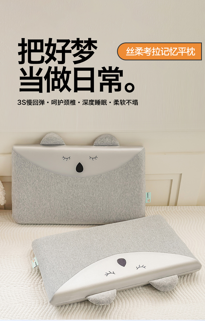 当前位置: 91家纺网 > 商品网购 > 枕头/枕芯/保健枕/颈椎枕 > 枕头枕芯 > 麦肯锡 2025新款丝柔考拉记忆平枕 枕头枕芯 灰色/对