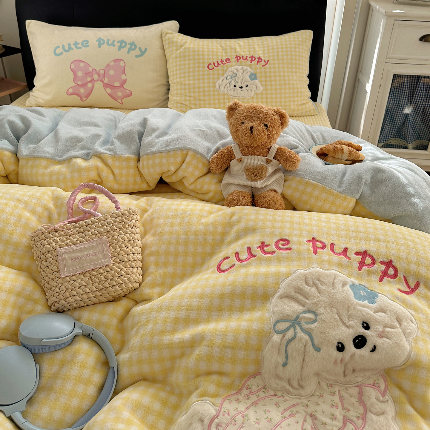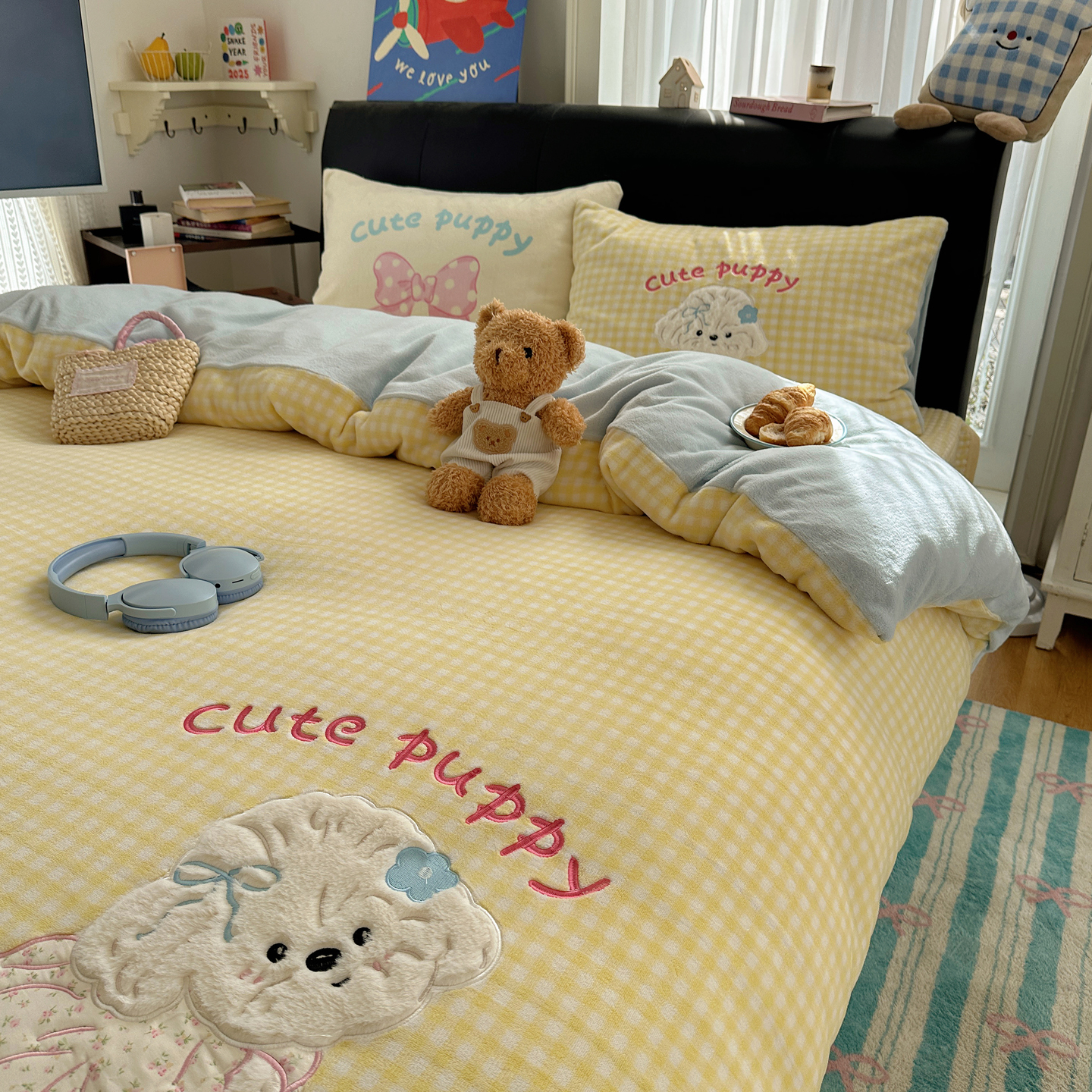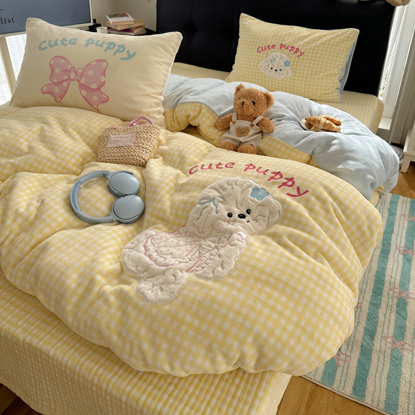(总)觅糖家纺 2025新款大版卡通牛奶绒床盖四件套,奶油小狗,甜心哈基米,樱桃小狗