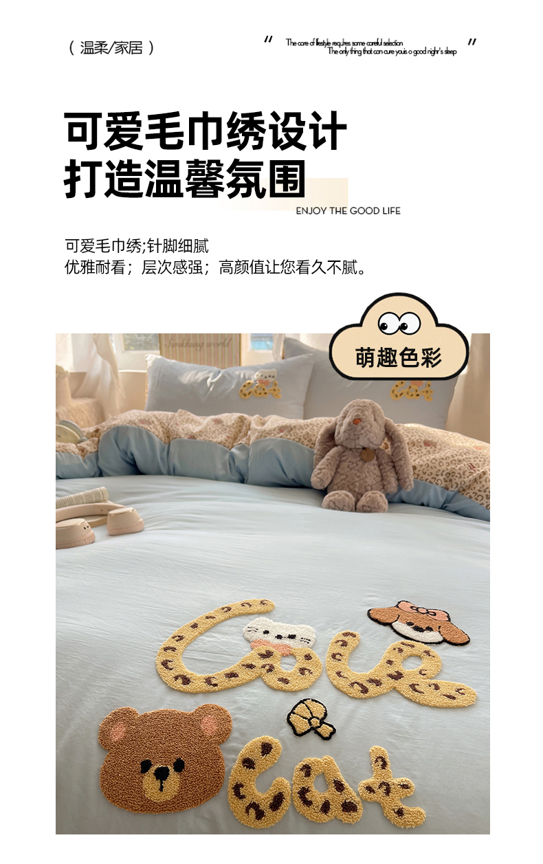 当前位置: 91家纺网 > 商品网购 > 床品套件 > 四件套 > 毛巾绣四件套 > 凯洛奇 2026新款A类卡通豹纹毛巾绣软糯糯水洗棉四件套(提供买家秀) 豹纹萌宠