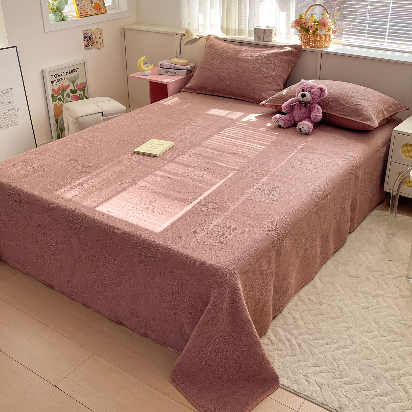 (总)源舜家纺 2026新款全棉大提花砂洗床盖三件套—花开富贵大圆满系列,圆满-豆沙粉,圆满-灰,圆满-卡,圆满-蓝,圆满-绿,圆满-紫