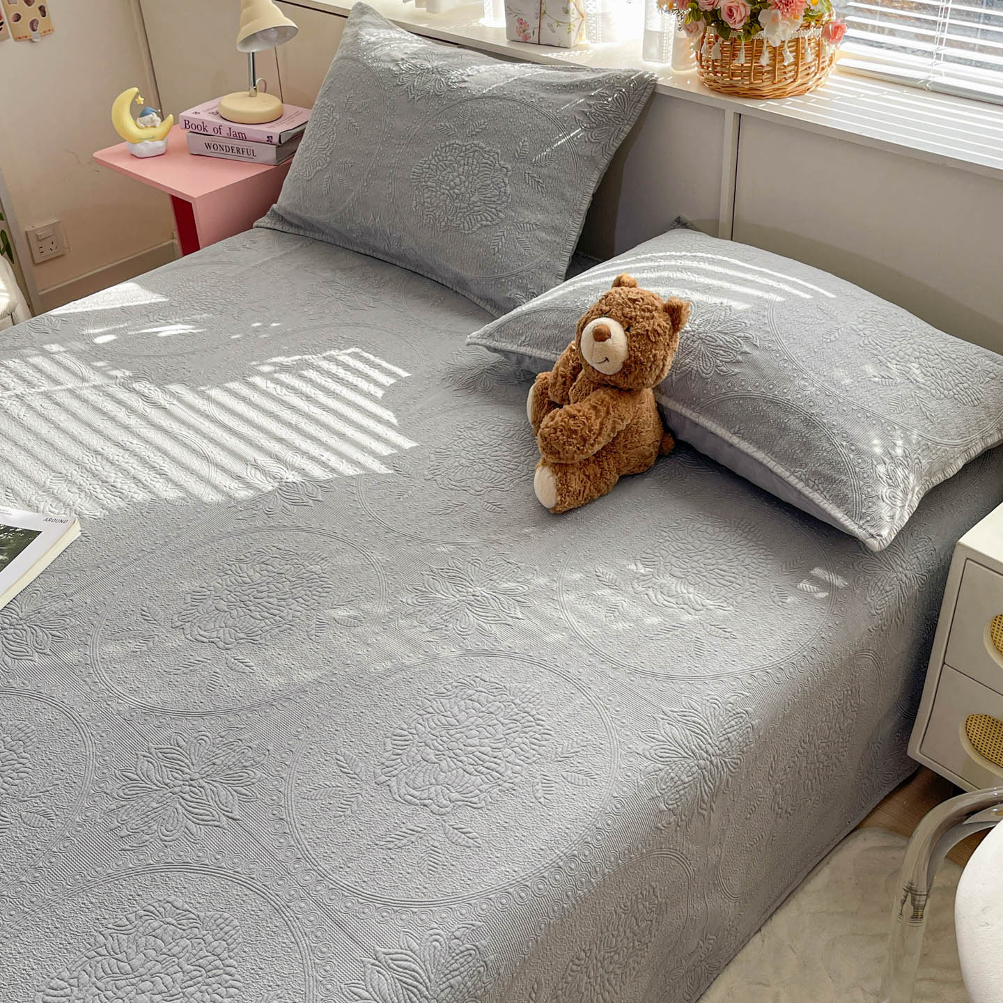 (总)源舜家纺 2026新款天丝棉麻莱赛尔莫代尔天丝棉米粒绣床盖三件套,米粒-绿,米粒-灰,米粒-米,米粒-蓝,米粒-粉,米粒-豆沙