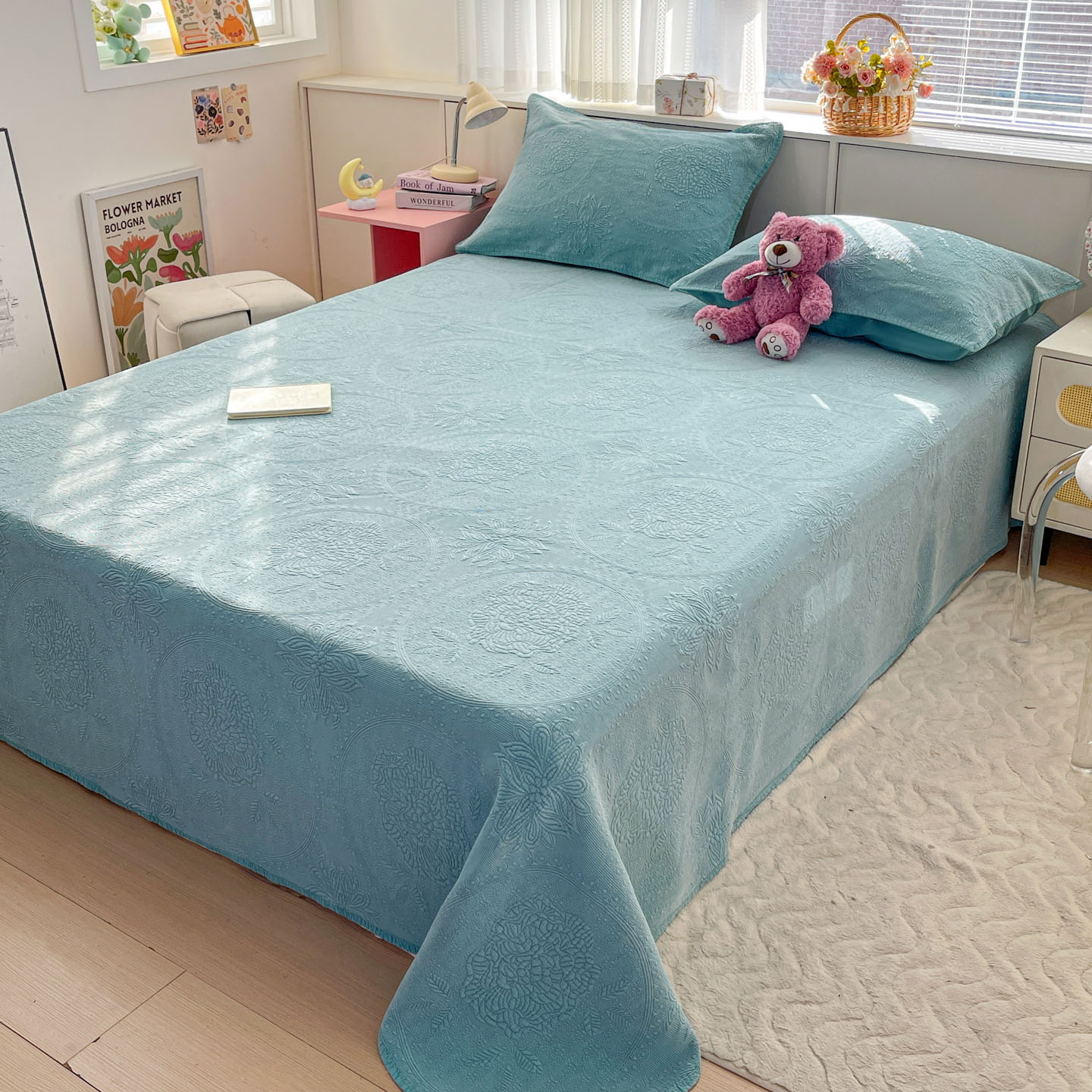 (总)源舜家纺 2026新款莱赛尔天丝花边榻榻米炕盖,薄荷小熊,春日小碎花,粉黛繁花,粉色玫瑰,莫兰迪咖,莫奈花园粉,浅灰复古花,浅青蔷薇,紫罗兰