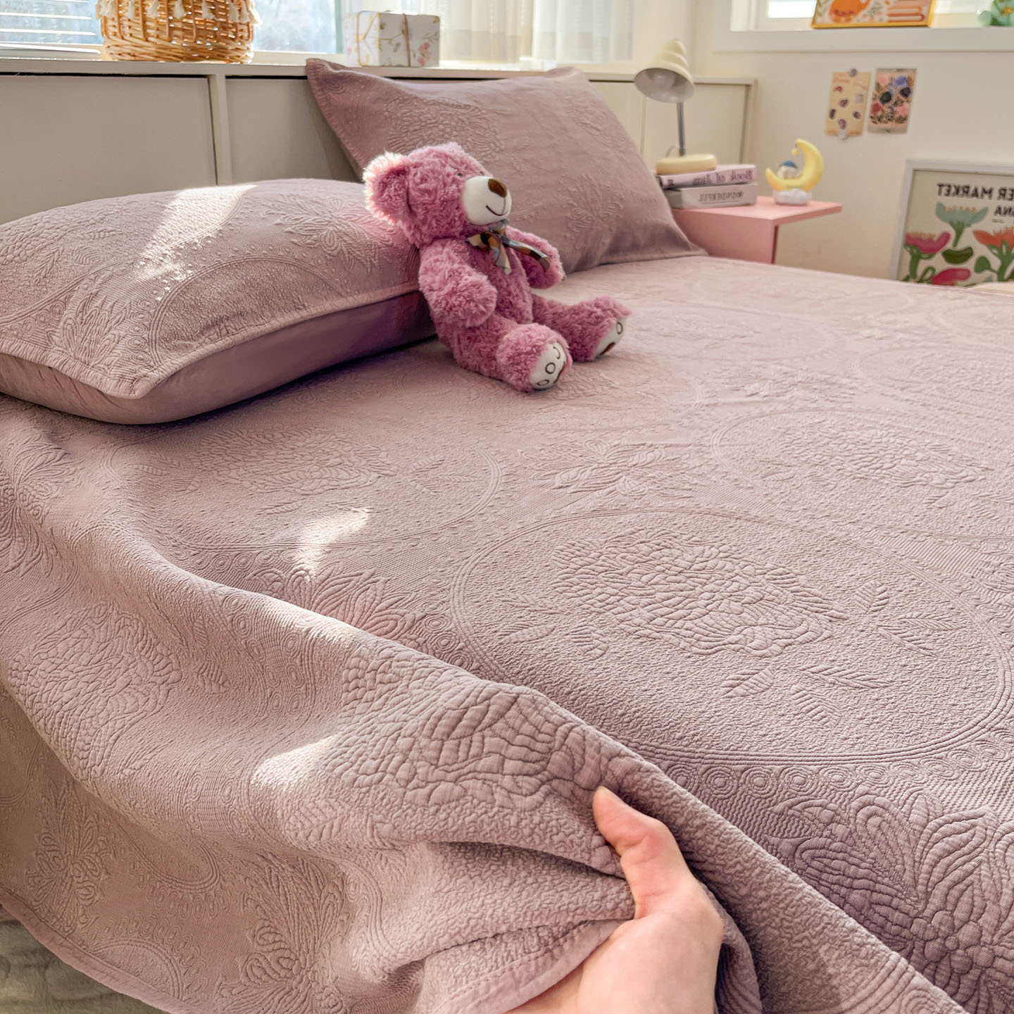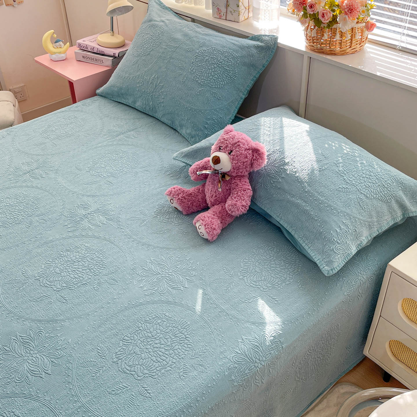 (总)源舜家纺 2025新款牛奶婴儿绒米粒绣韩系花边床盖三件套,婴儿草绿,婴儿豆沙,婴儿粉,婴儿灰,婴儿灰蓝,婴儿蓝,婴儿深绿,婴儿紫