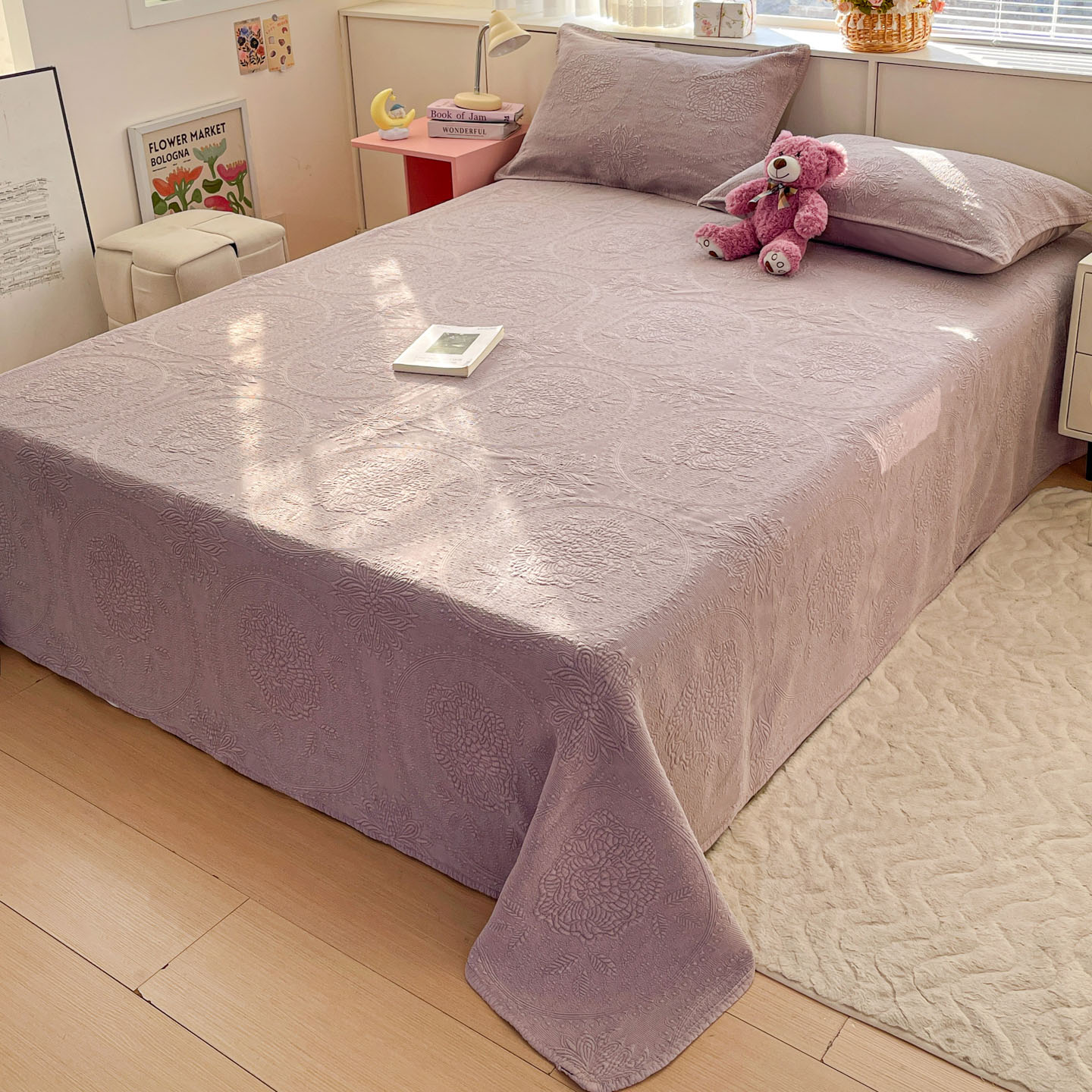 商品名称:源舜家纺 2026新款全棉大提花砂洗床盖三件套—花开富贵大圆满系列 圆满-紫