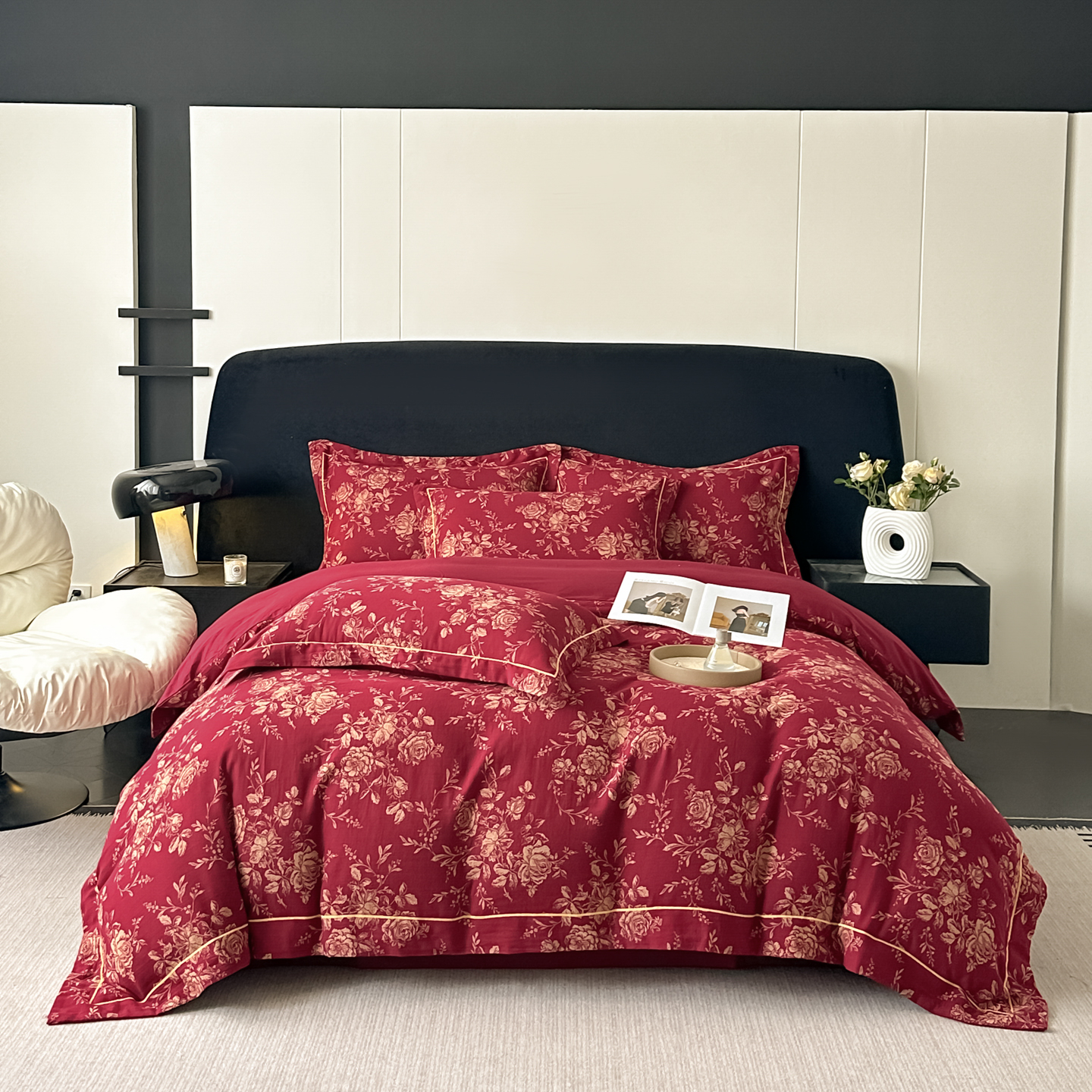 金丝鸟家纺 2025新款全棉纯棉色织提花婚庆四件套 洛神玫瑰