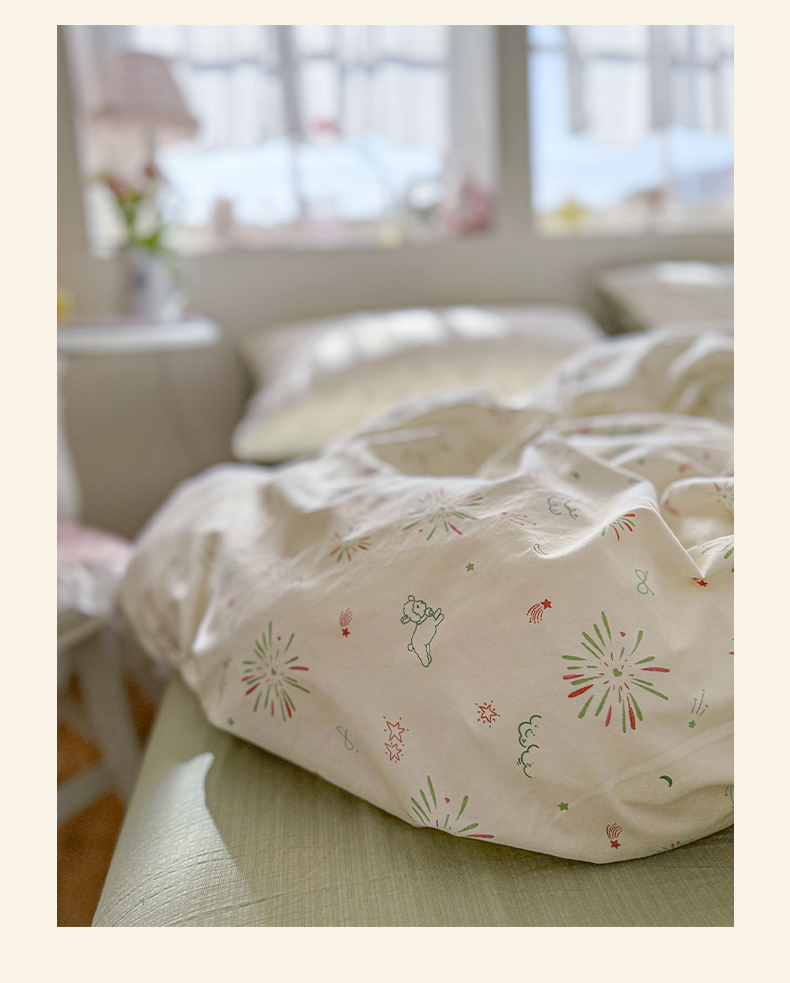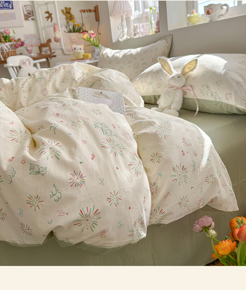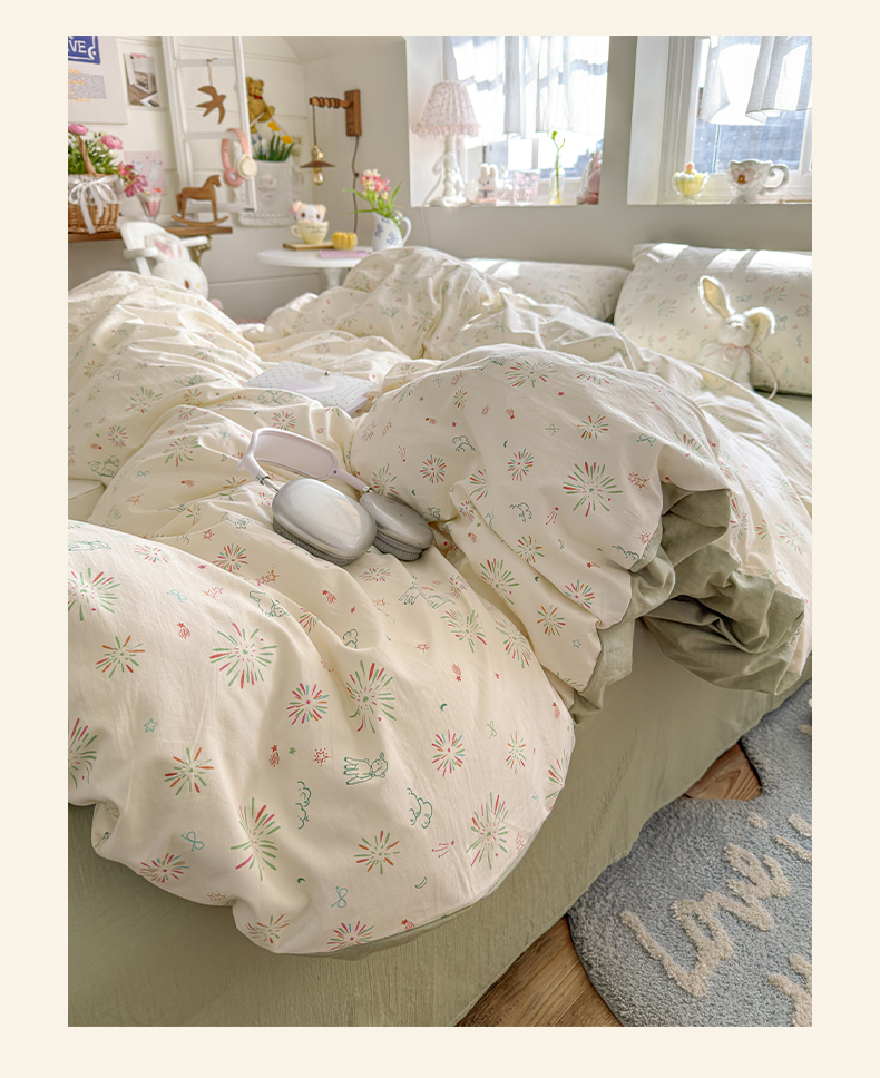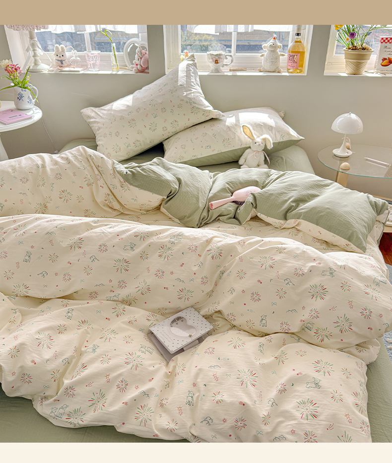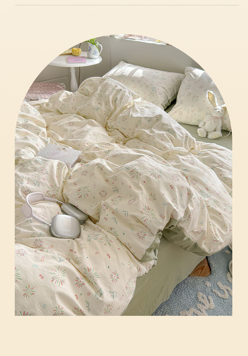 当前位置: 91家纺网 > 商品网购 > 床品套件 > 四件套 > 化纤普通四件套 > 罗亿家纺 2026新款A类古法水洗仿棉云感纱四件套 烟花星语