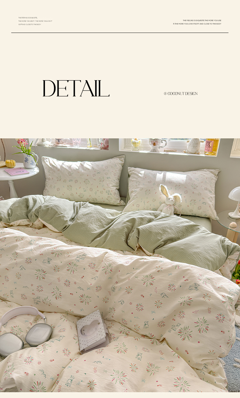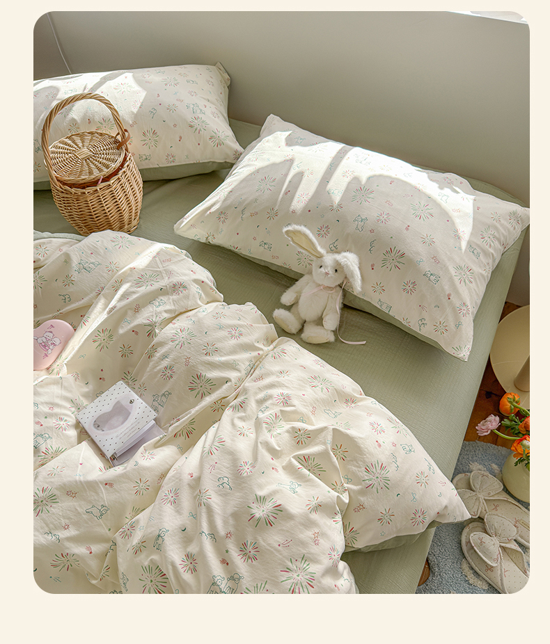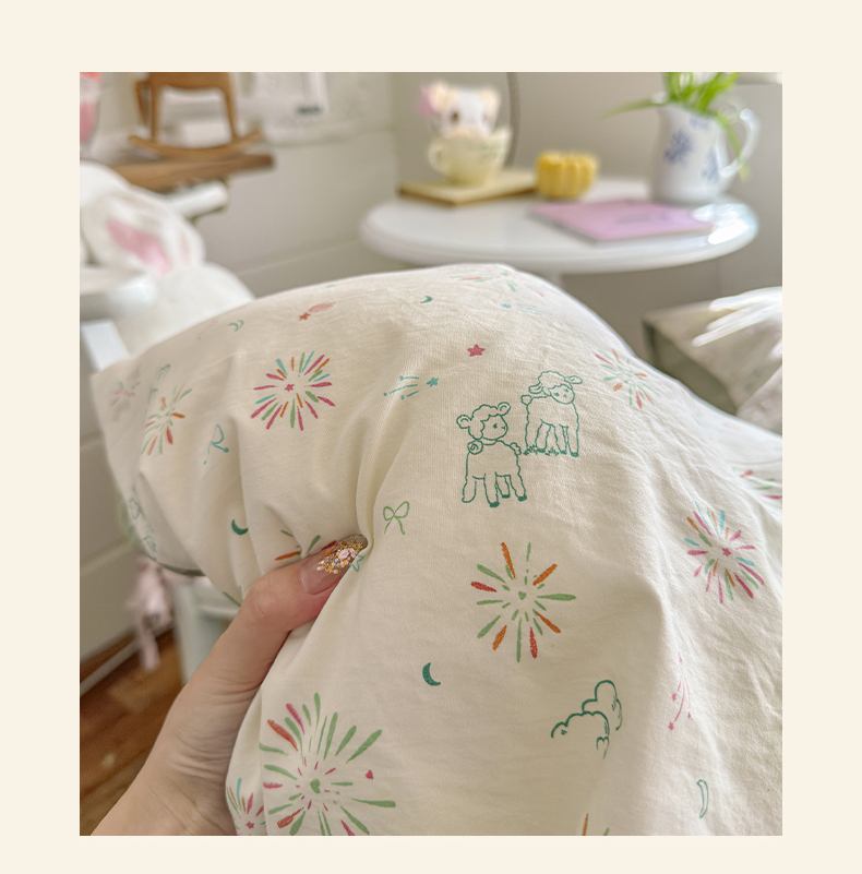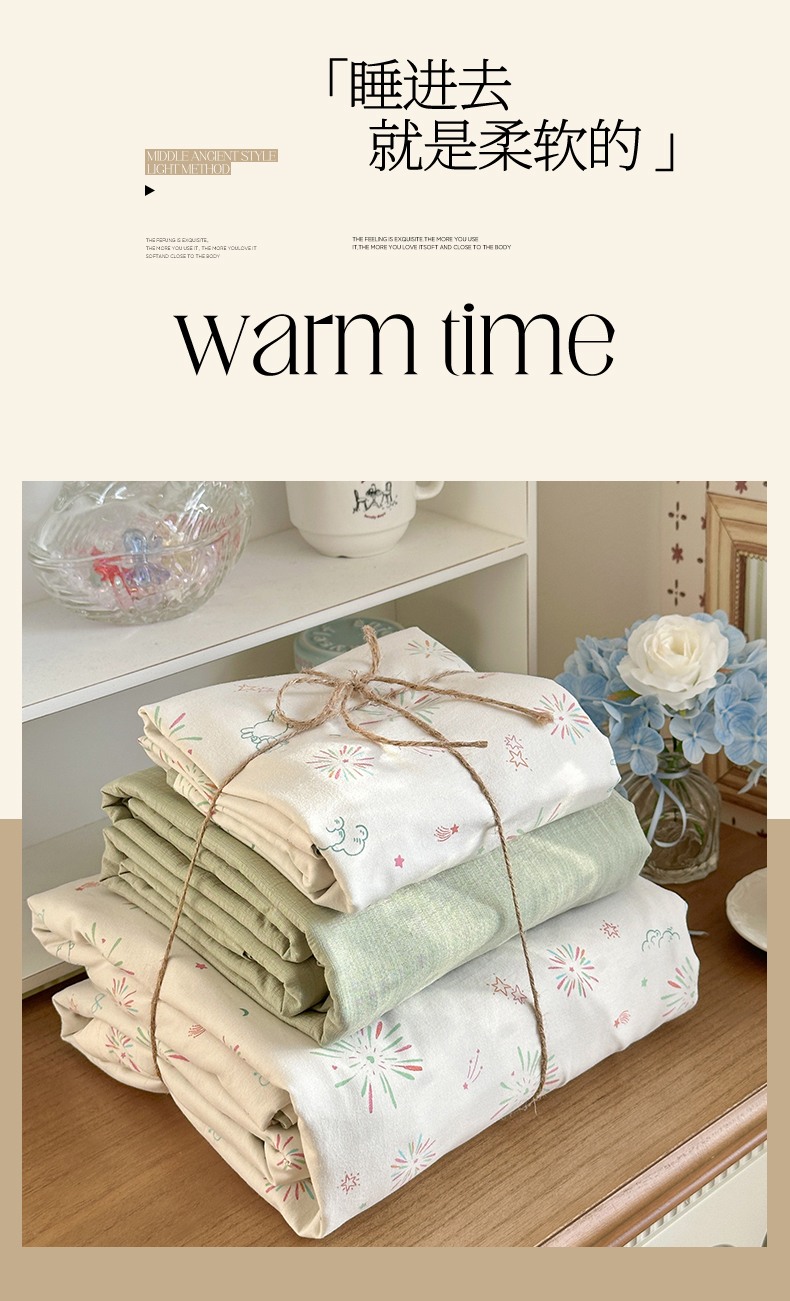 当前位置: 91家纺网 > 商品网购 > 床品套件 > 四件套 > 化纤普通四件套 > 罗亿家纺 2026新款A类古法水洗仿棉云感纱四件套 烟花星语