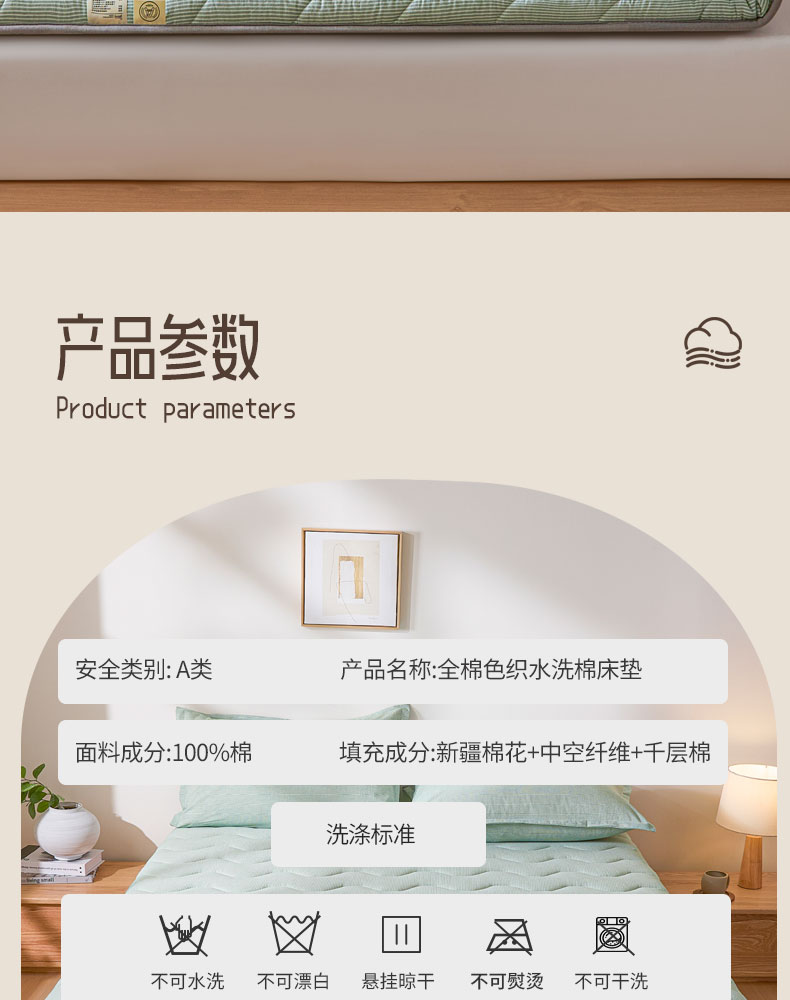 当前位置: 91家纺网 > 商品网购 > 床垫/床褥 > 普通床垫 > 丽诺床垫 2026新款A类全棉色织水洗棉棉花三明治床垫(床垫不定制超200x220以上的尺寸) 细条绿