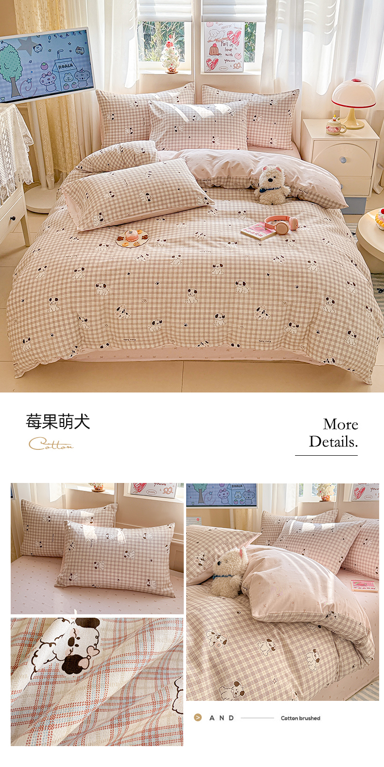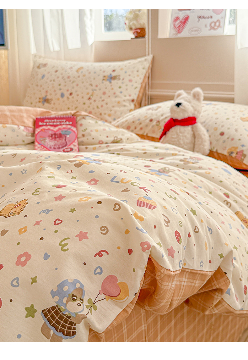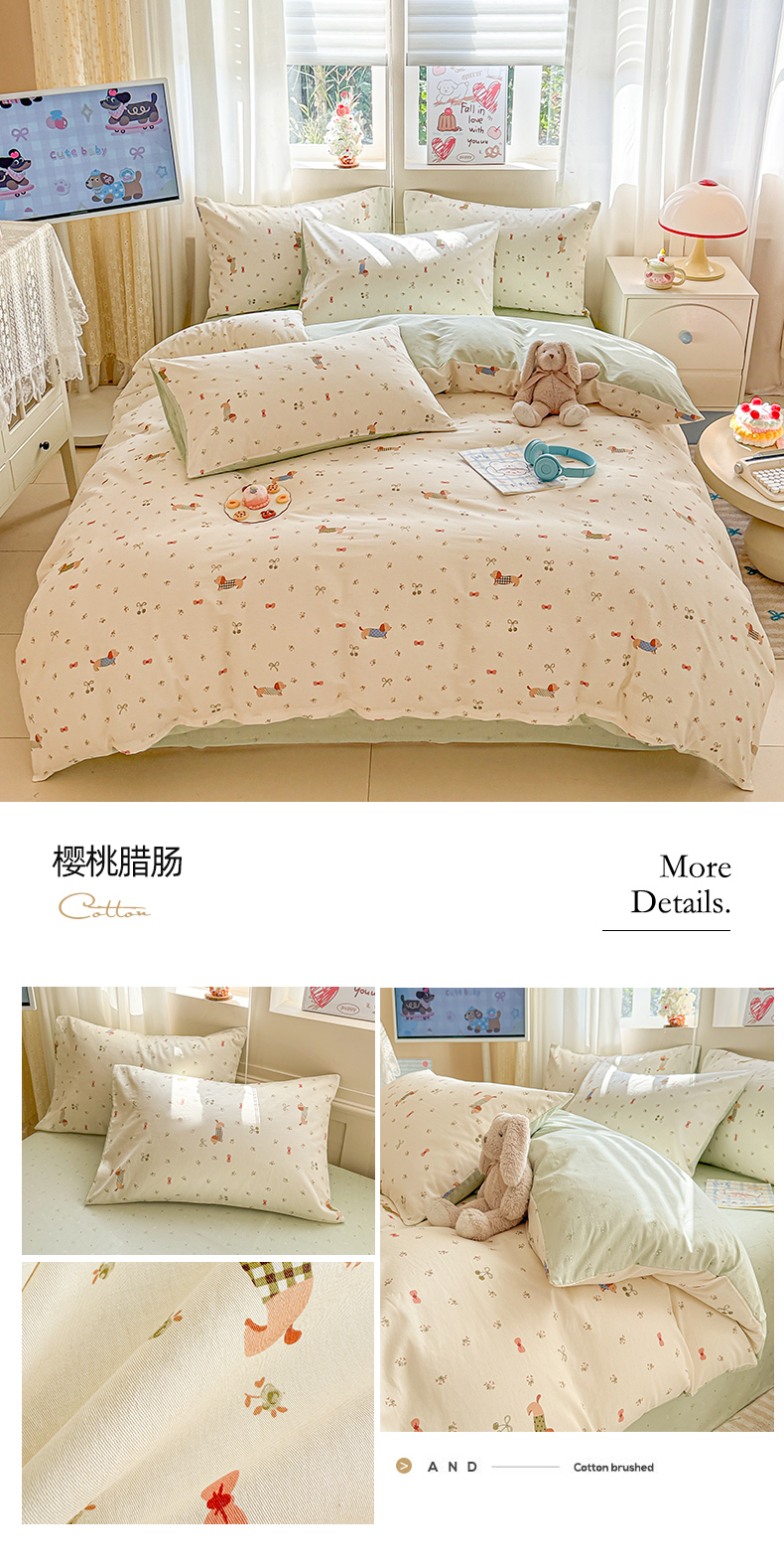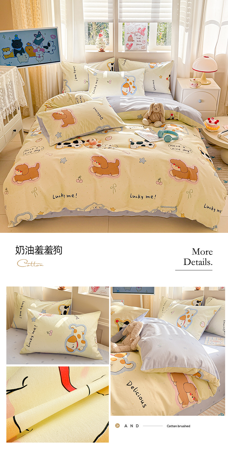 (总)曼之夏 2025新款全棉纯棉40支学生季卡通印花四件套,椰蓝小腊肠,茶茶狗,格子猫,嗨皮狗,开心屋,可爱多,可可汪,玛奇朵,奶昔小熊,泡芙小象,曲奇小狗,趣味熊,甜甜圈,甜心猫咪,童画,小狗日记,樱桃熊仔