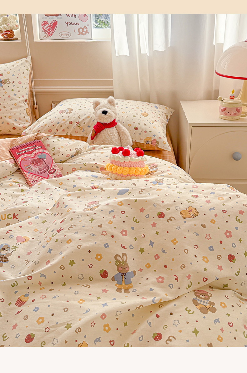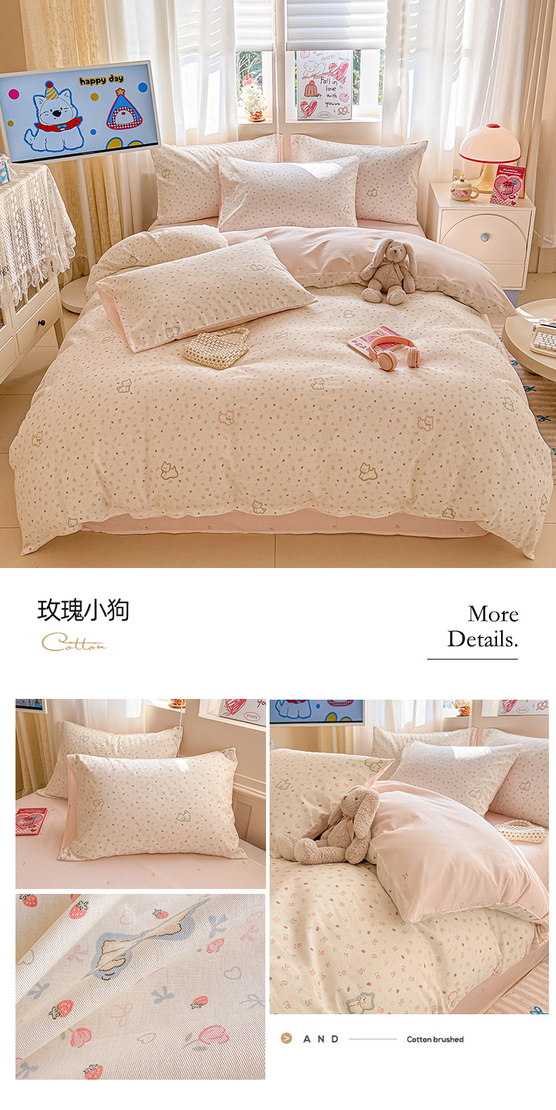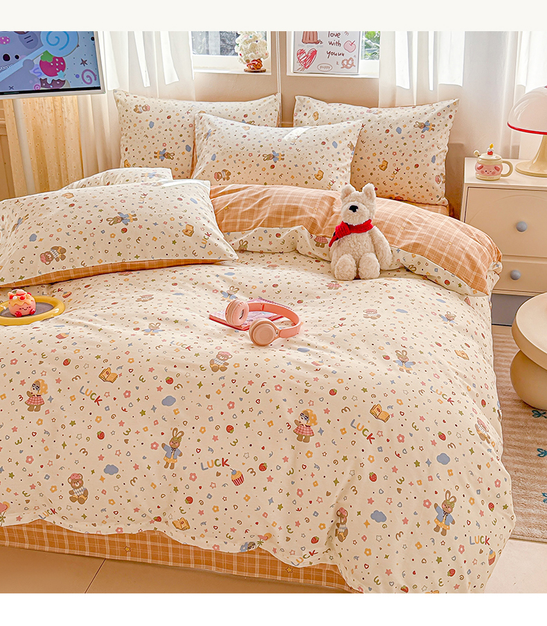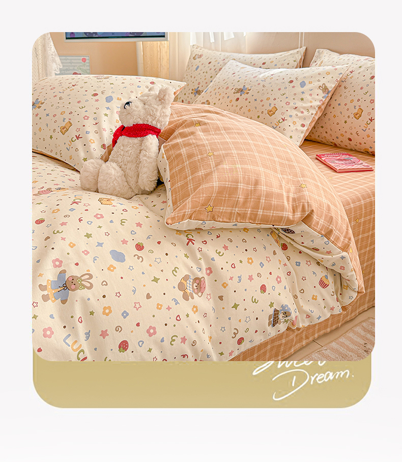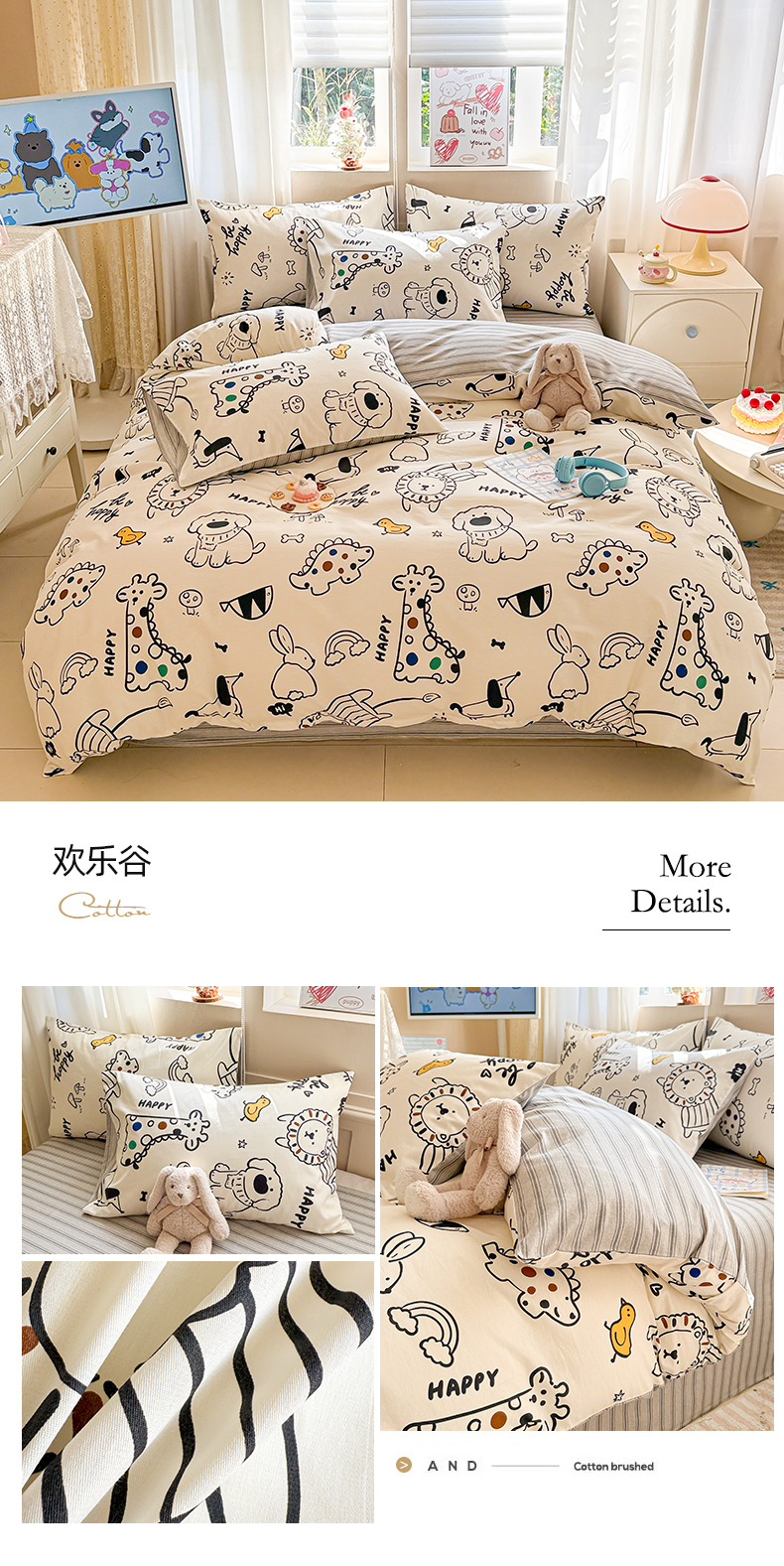 (总)曼之夏 2025新款全棉纯棉40支学生季卡通印花四件套,椰蓝小腊肠,茶茶狗,格子猫,嗨皮狗,开心屋,可爱多,可可汪,玛奇朵,奶昔小熊,泡芙小象,曲奇小狗,趣味熊,甜甜圈,甜心猫咪,童画,小狗日记,樱桃熊仔