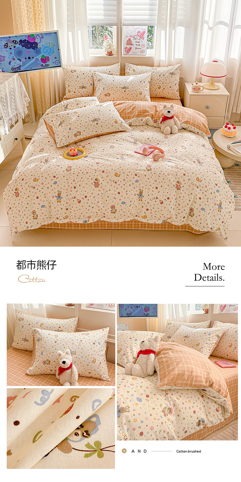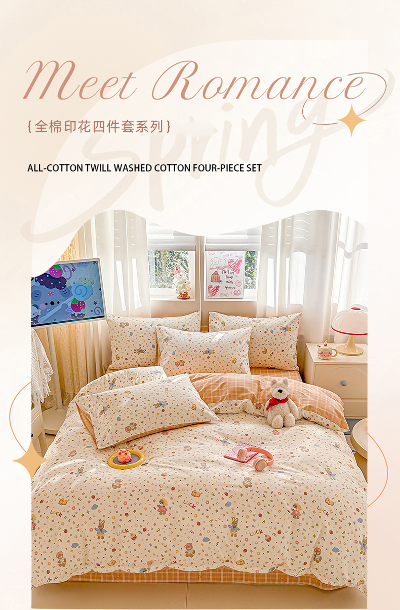 (总)曼之夏 2025新款原棉加厚磨毛印花四件套,比心,布鲁兔,春风十里,大都会,简兮,麦琪熊,麦语-灰,梦游记,眠时光,奇想,轻奢生活,塔维尔(米),甜心小熊,威斯丁,闲趣时光,意林(兰)