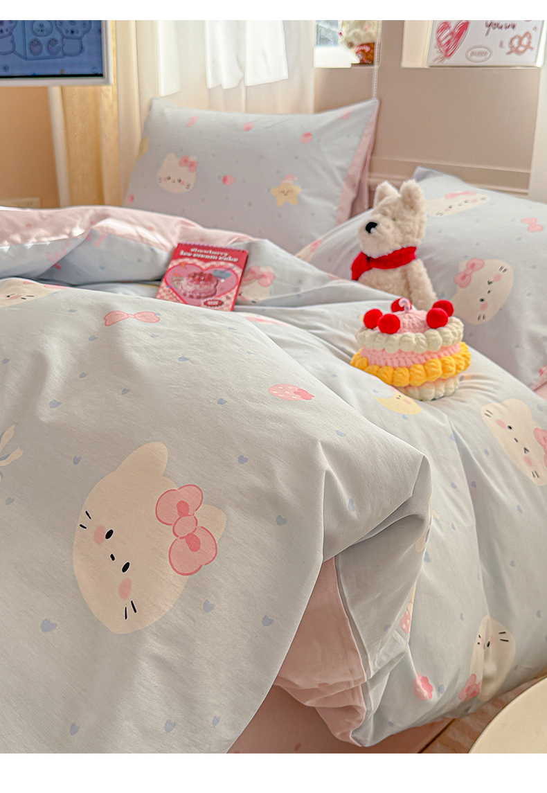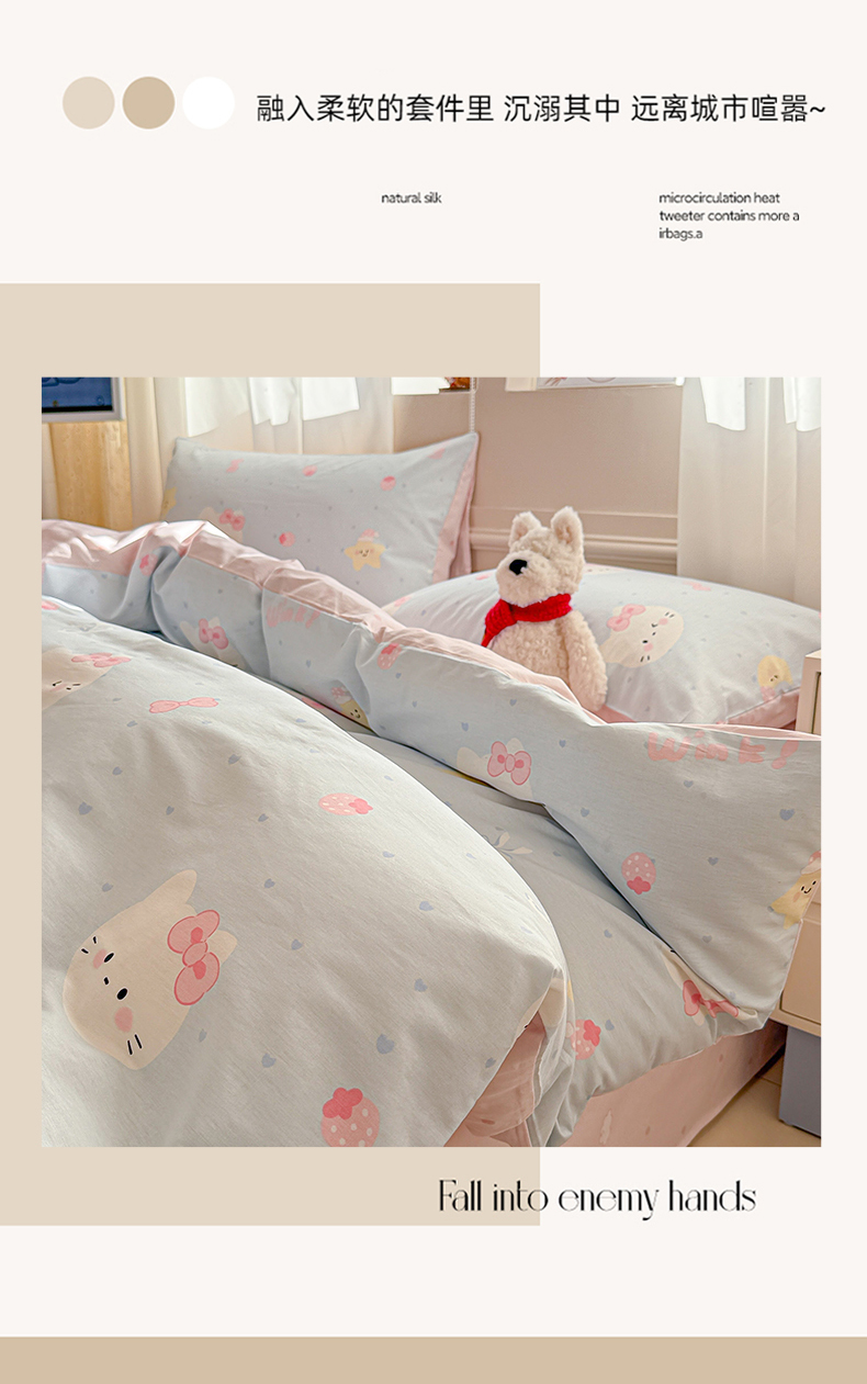 (总)曼之夏 2025新款全棉纯棉双层印花四件套,缤纷草莓,哈哈狗,花丛兔,花开半夏,花满楼,凯蒂熊仔,快乐凯蒂,快乐星球,玫瑰物语,萌萌兔,陌上花开,软萌女孩,水果派对,亭亭玉立,紫梦