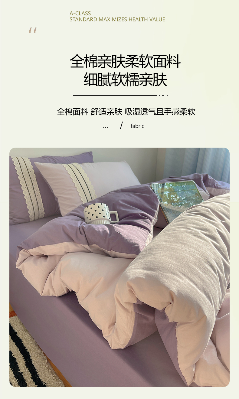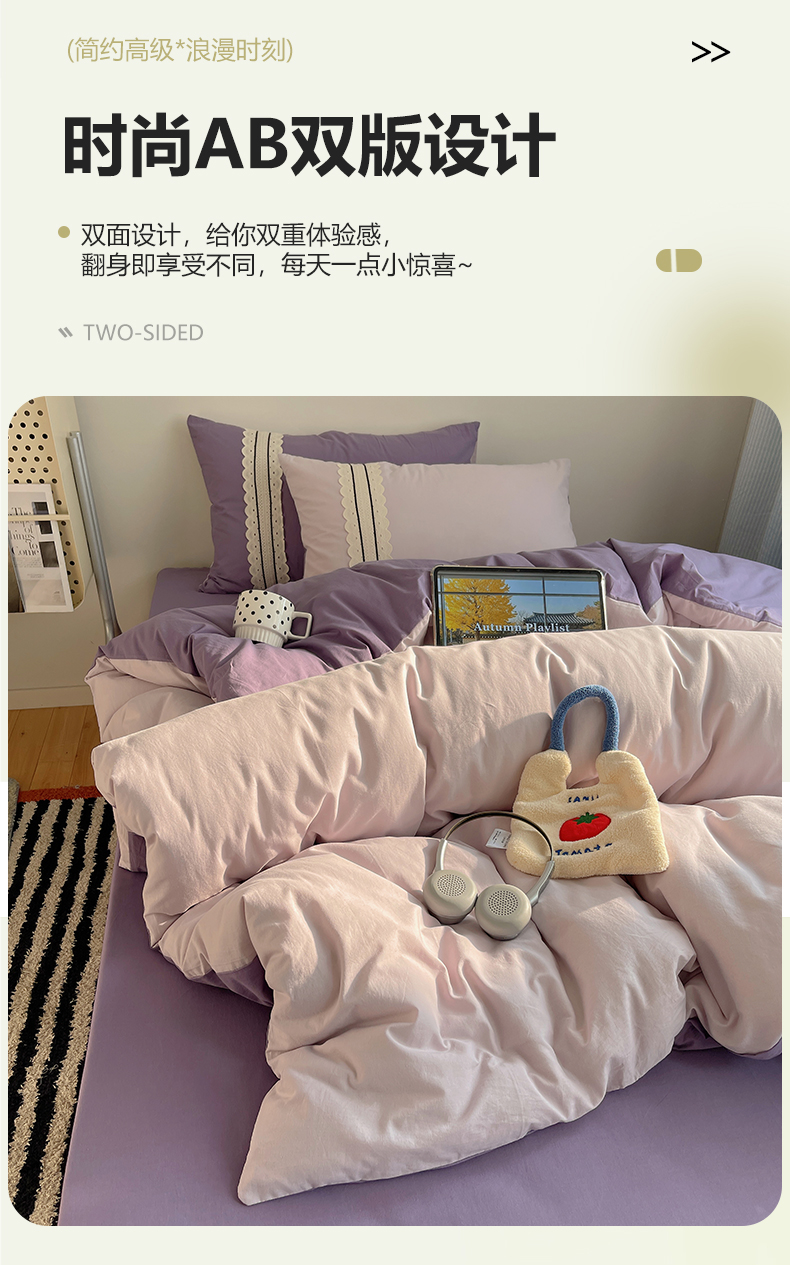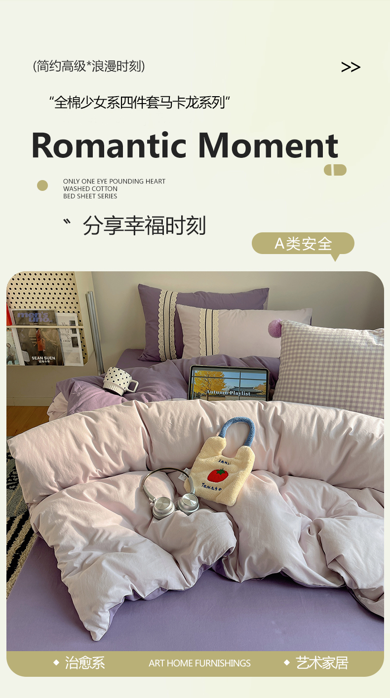 当前位置: 91家纺网 > 商品网购 > 床品套件 > 四件套 > 水洗棉四件套 > 三朵家纺 2026新款ins风全棉纯棉水洗棉少女系四件套-玛卡龙系列 马卡龙-薰衣草