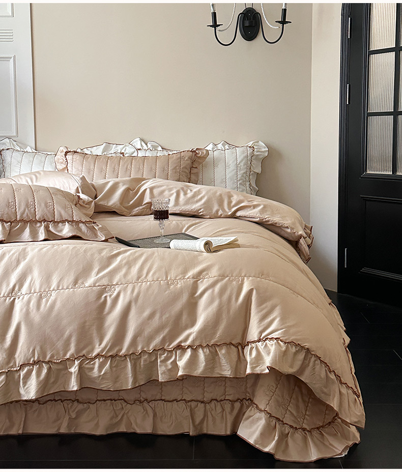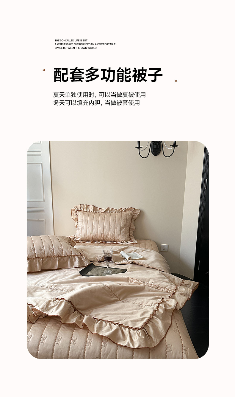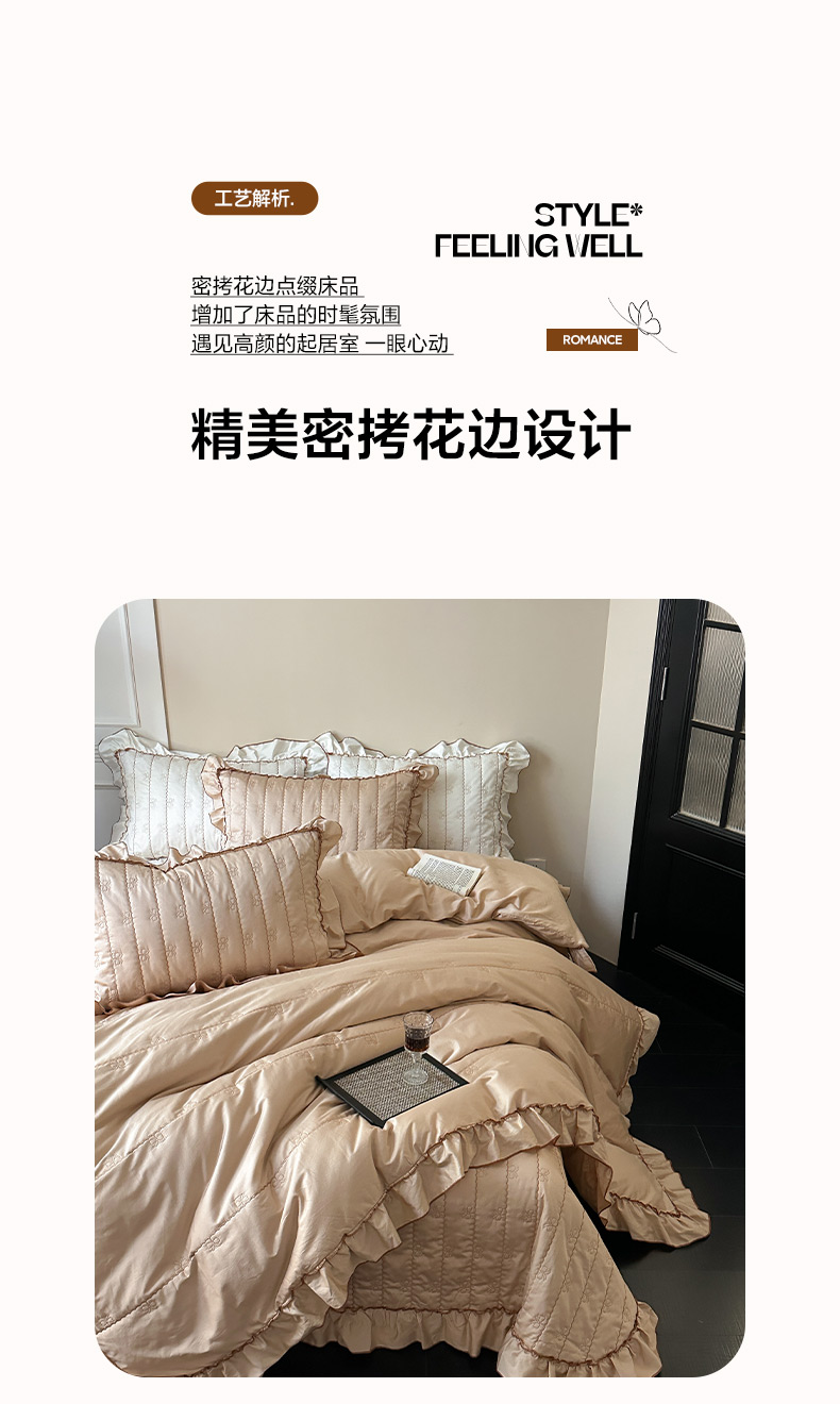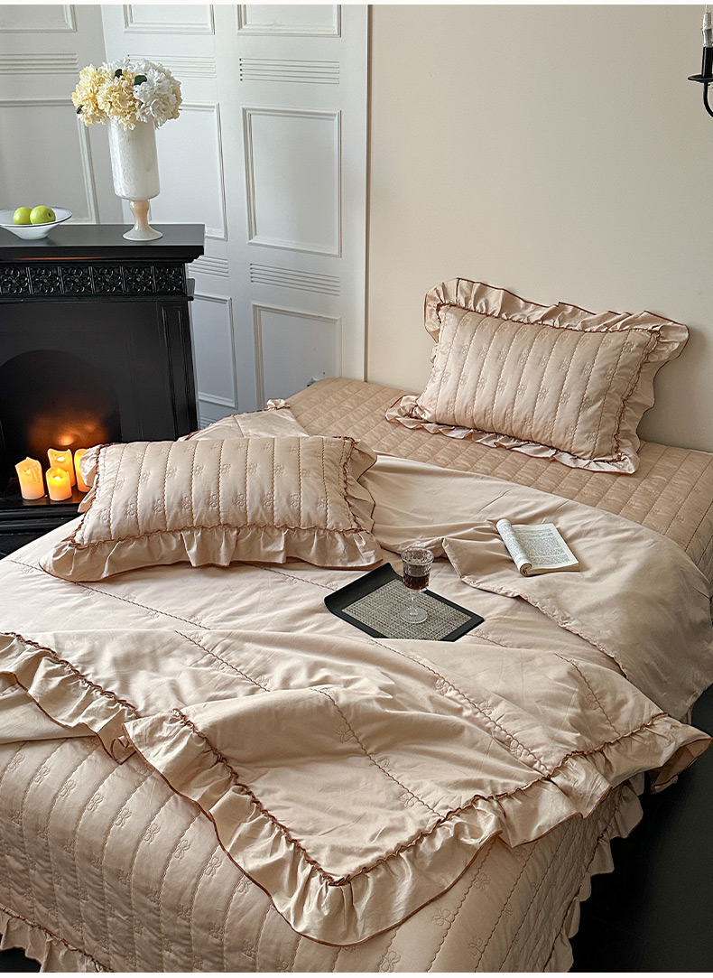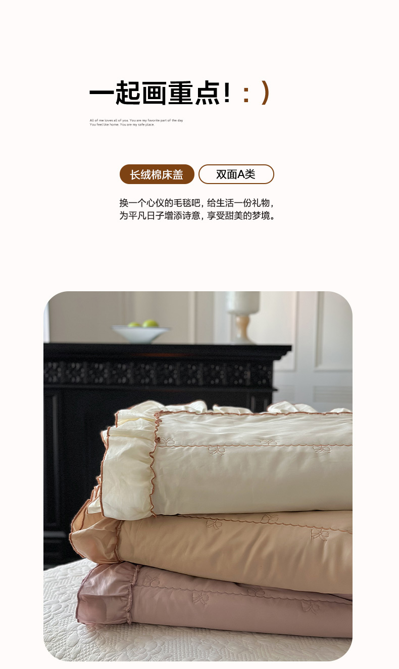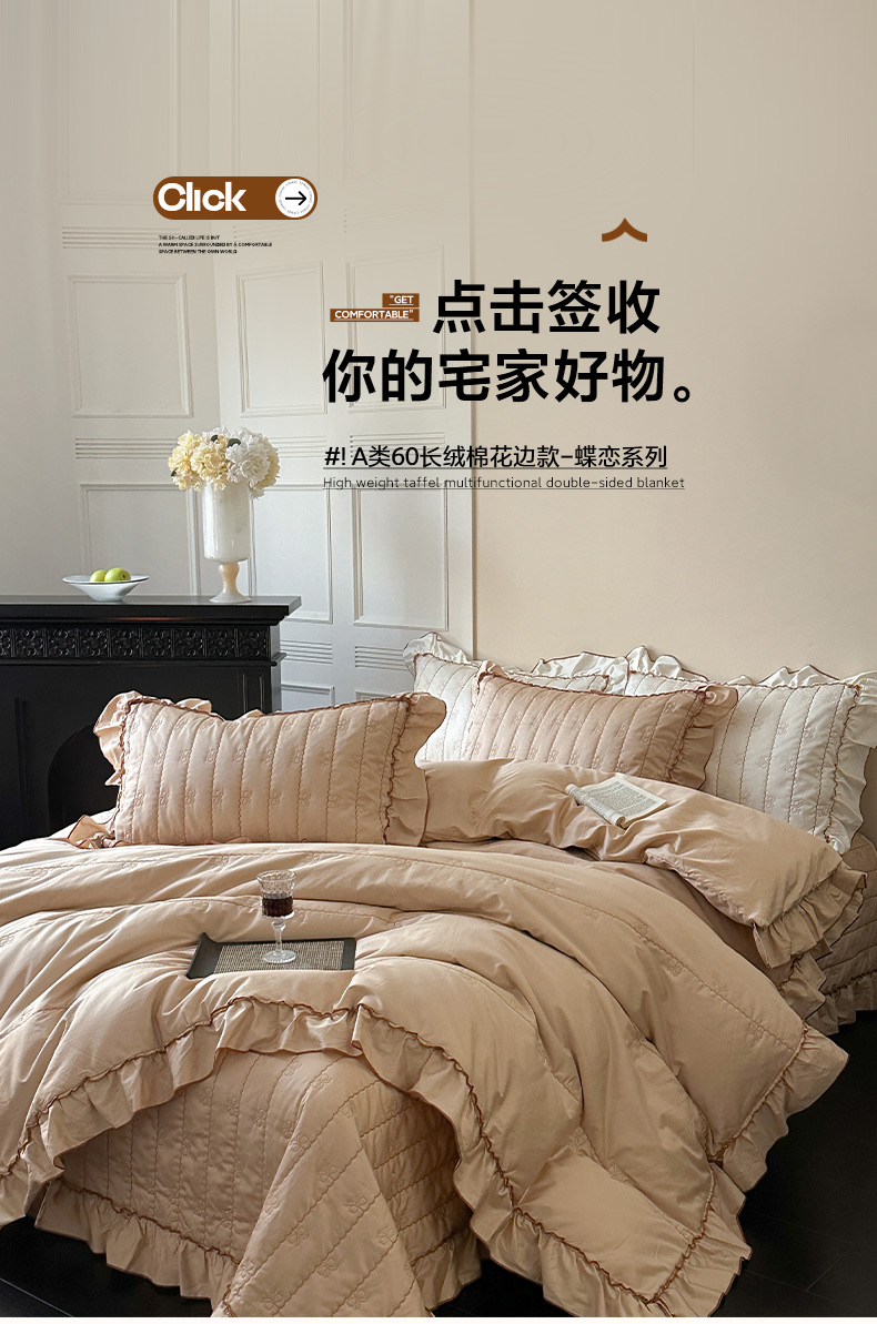 (总)琳可家居 2026新款60S长绒棉花边床盖A类双面全棉高温水洗-蝶恋系列,蝶恋-暖白,蝶恋-卡其,蝶恋-雾粉,组合