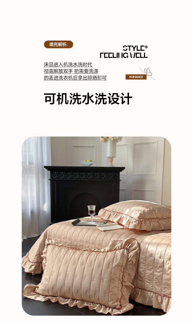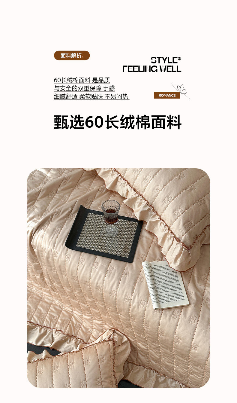 商品名称:琳可家居 2026新款60S长绒棉花边床盖A类双面全棉高温水洗-蝶恋系列 组合