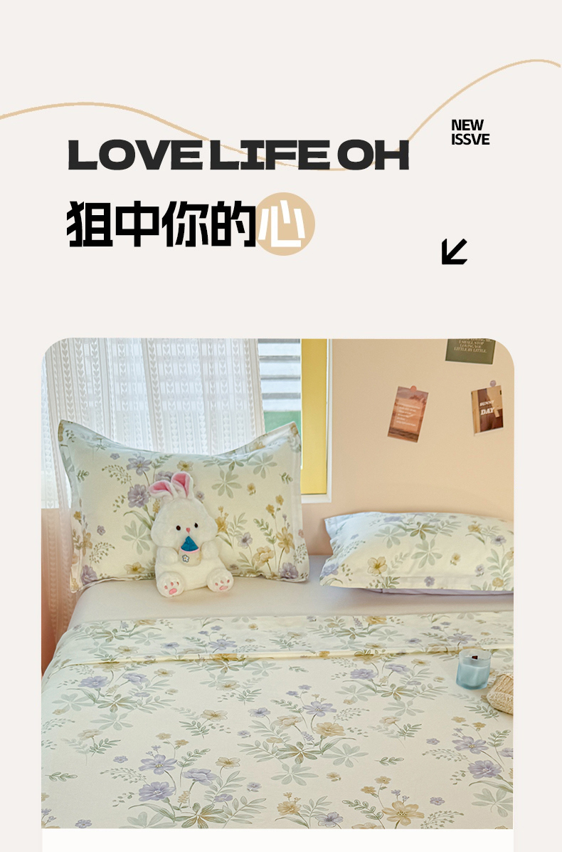 (总)尚帛 2025新款高支高密全棉小清新碎花少女心枕套系带系列四件套--提供买家秀,花柔香,墨染芳华,暖阳小花,蔷薇织梦,温柔花海,芋泥樱桃