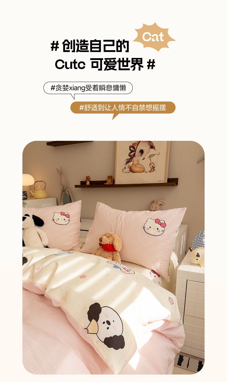 (总)雅居纺家纺 2022新款13070全棉印花四件套,草莓蝴蝶结,俄罗斯方块,黑白蝴蝶结,很嗨兔,可爱小兔,快乐花海,牛奶纹,胖胖鸭,棋盘格,日月争辉,西部恐龙,小情调,小桃桃