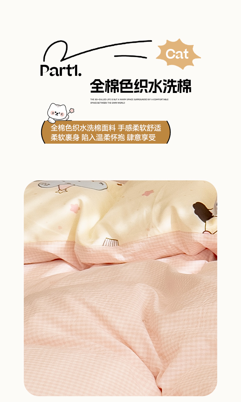(总)雅居纺家纺 2026新款全棉色织水洗棉毛巾绣猫咪四件套,绿格猫咪,木马猫咪,派对小猫,气球猫咪,星星猫咪,幸福猫咪