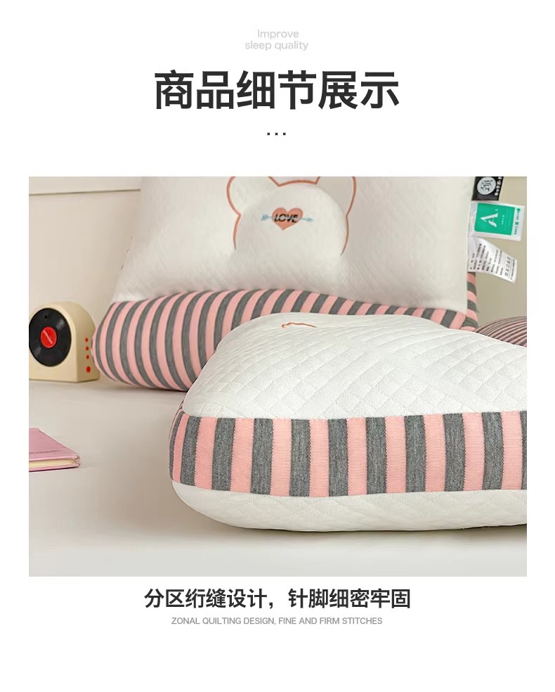当前位置: 91家纺网 > 商品网购 > 枕头/枕芯/保健枕/颈椎枕 > 枕头枕芯 > 凡星枕业 2026新款笑脸猫针织棉枕枕头枕芯 反牵引护颈枕-爱情熊粉色-低枕