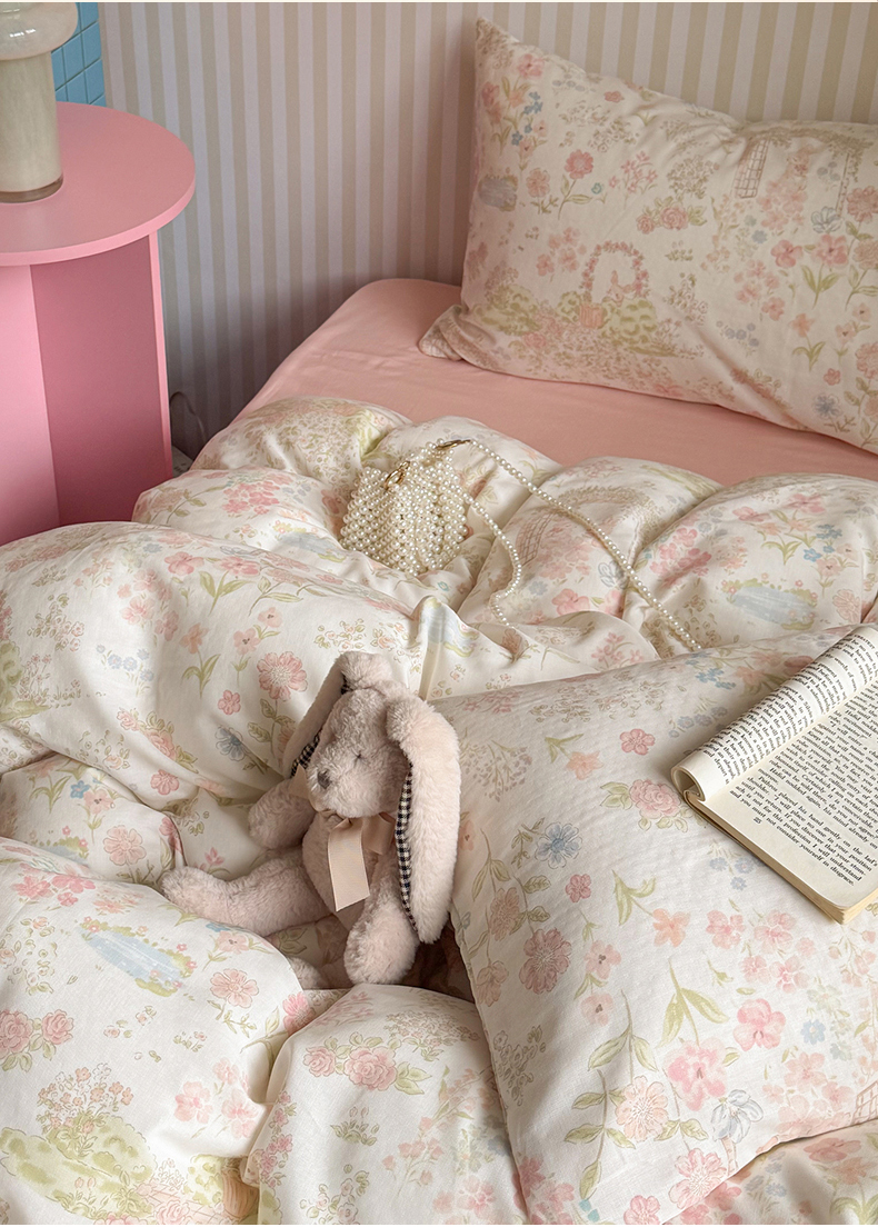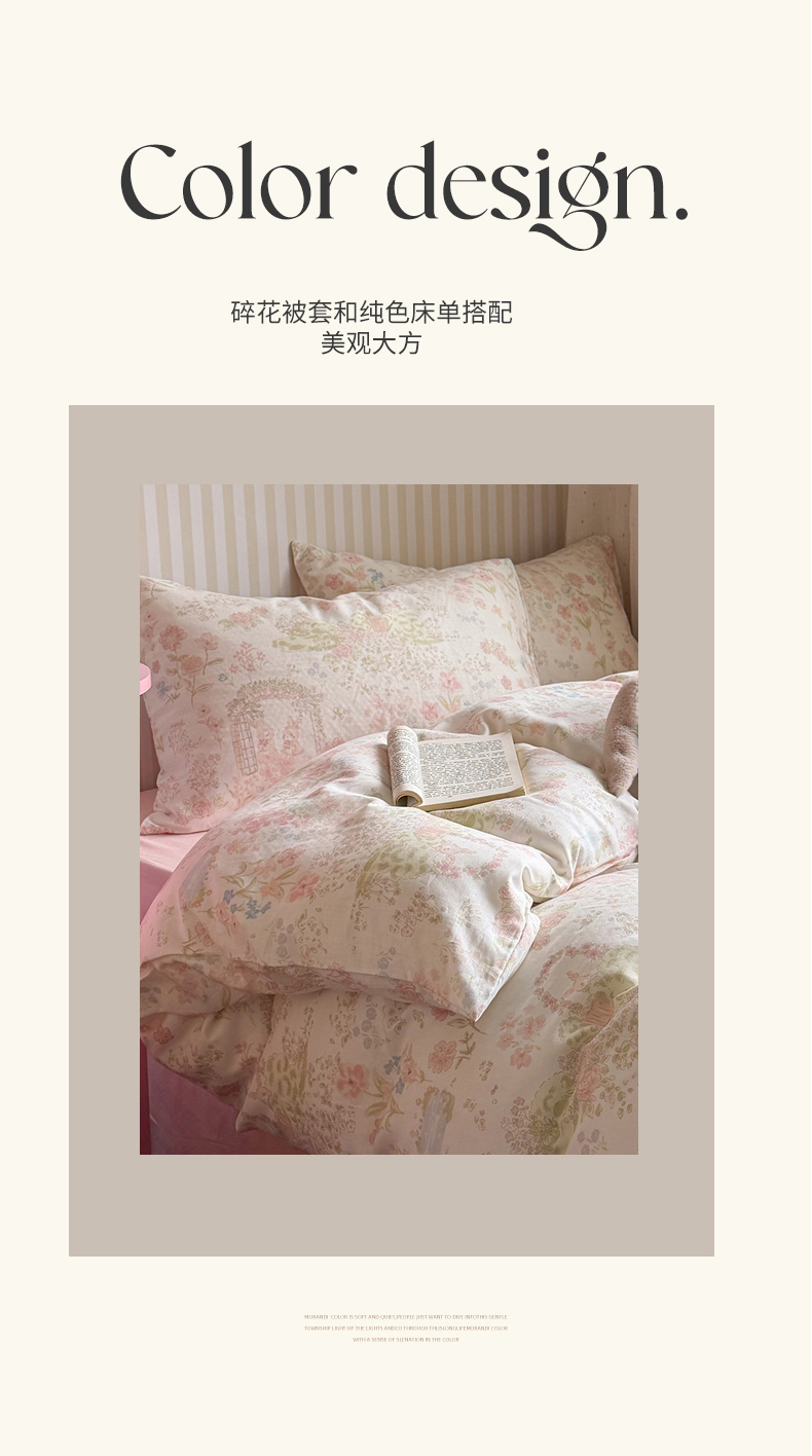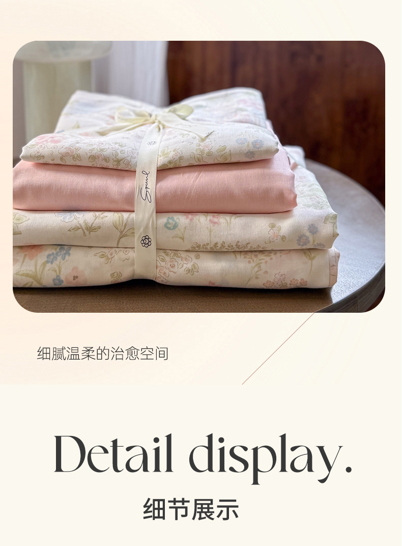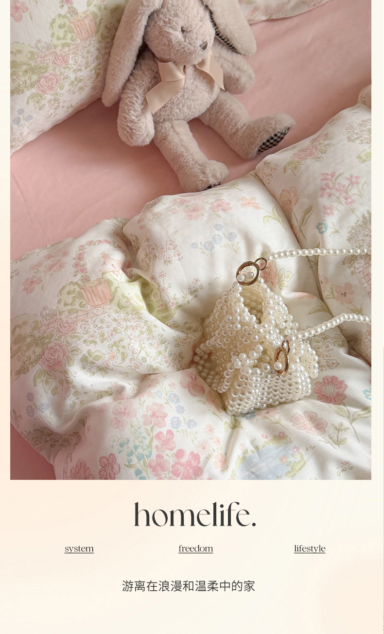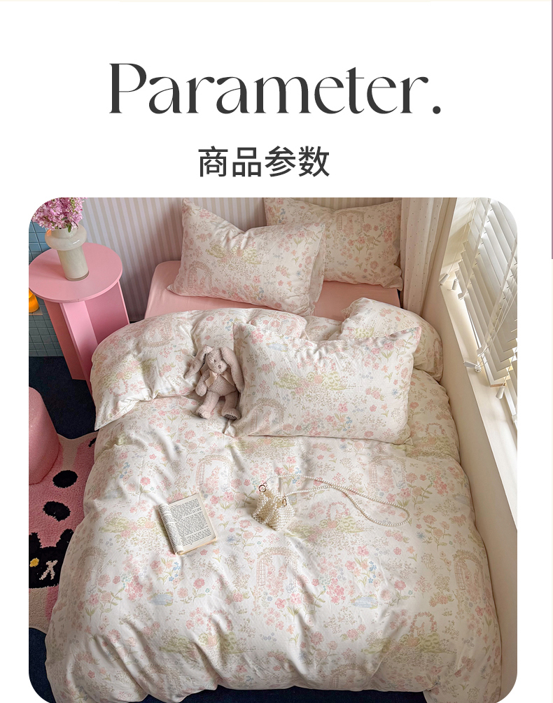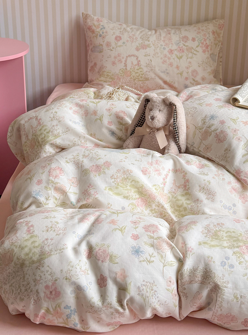当前位置: 91家纺网 > 商品网购 > 床品套件 > 四件套 > 双层纱四件套 > 麦伦家居 2026春夏新品全棉有氧双层纱印花系列简约款四件套 花间兔语