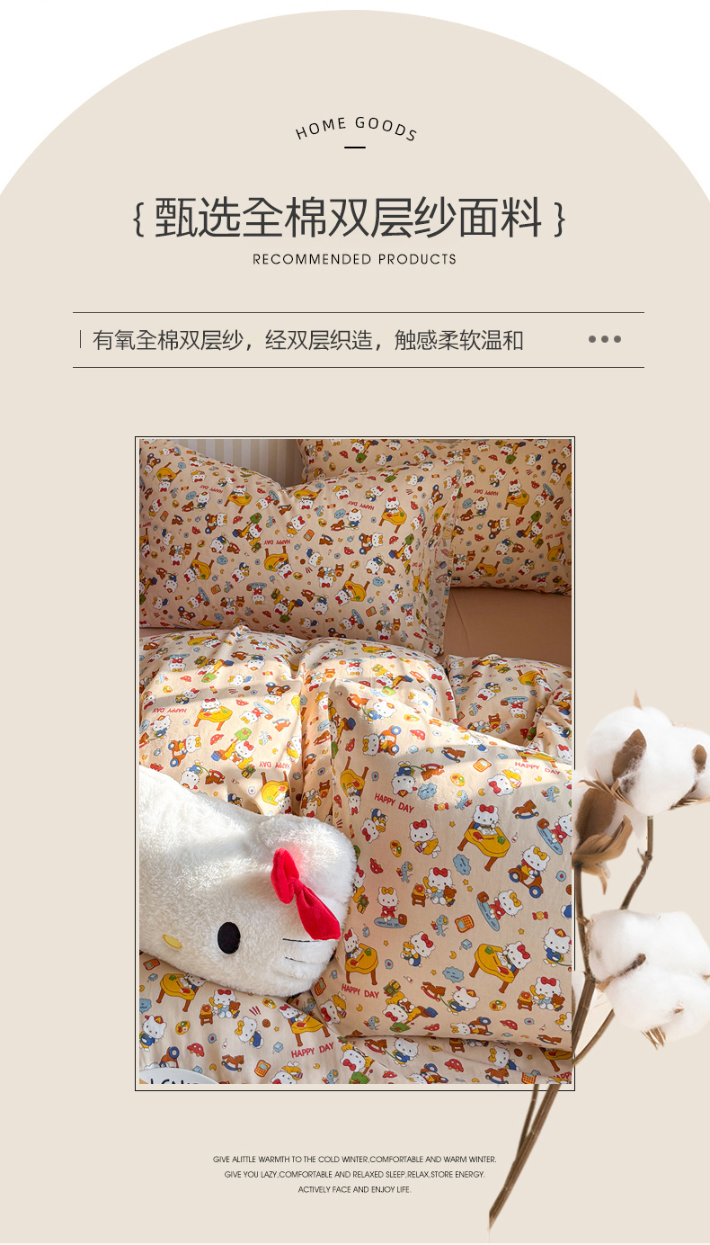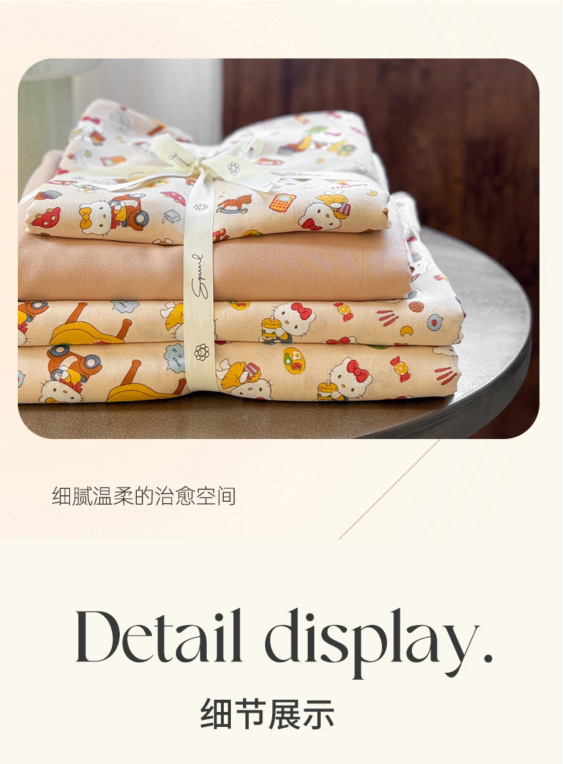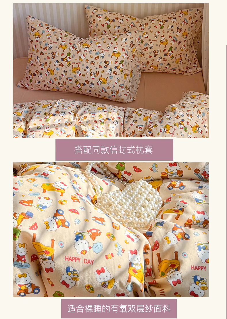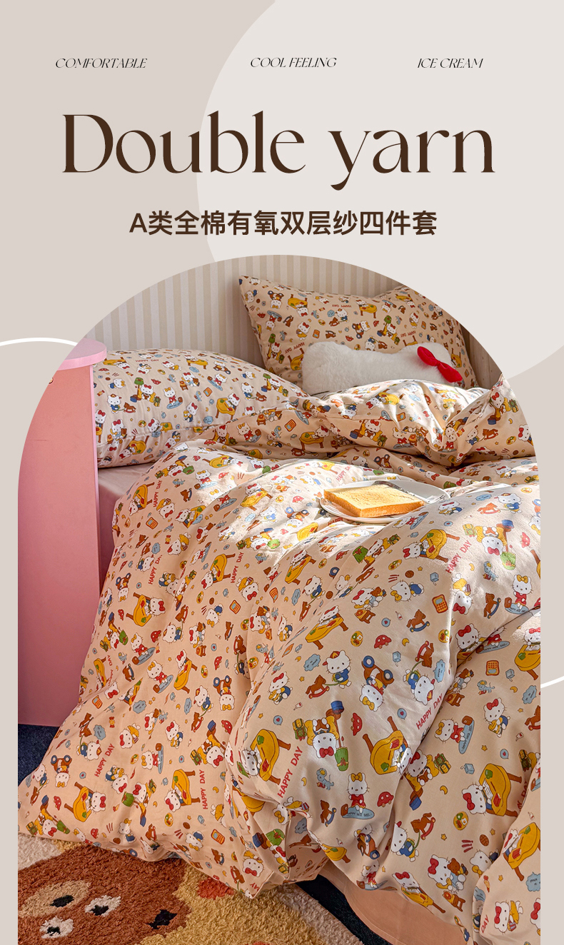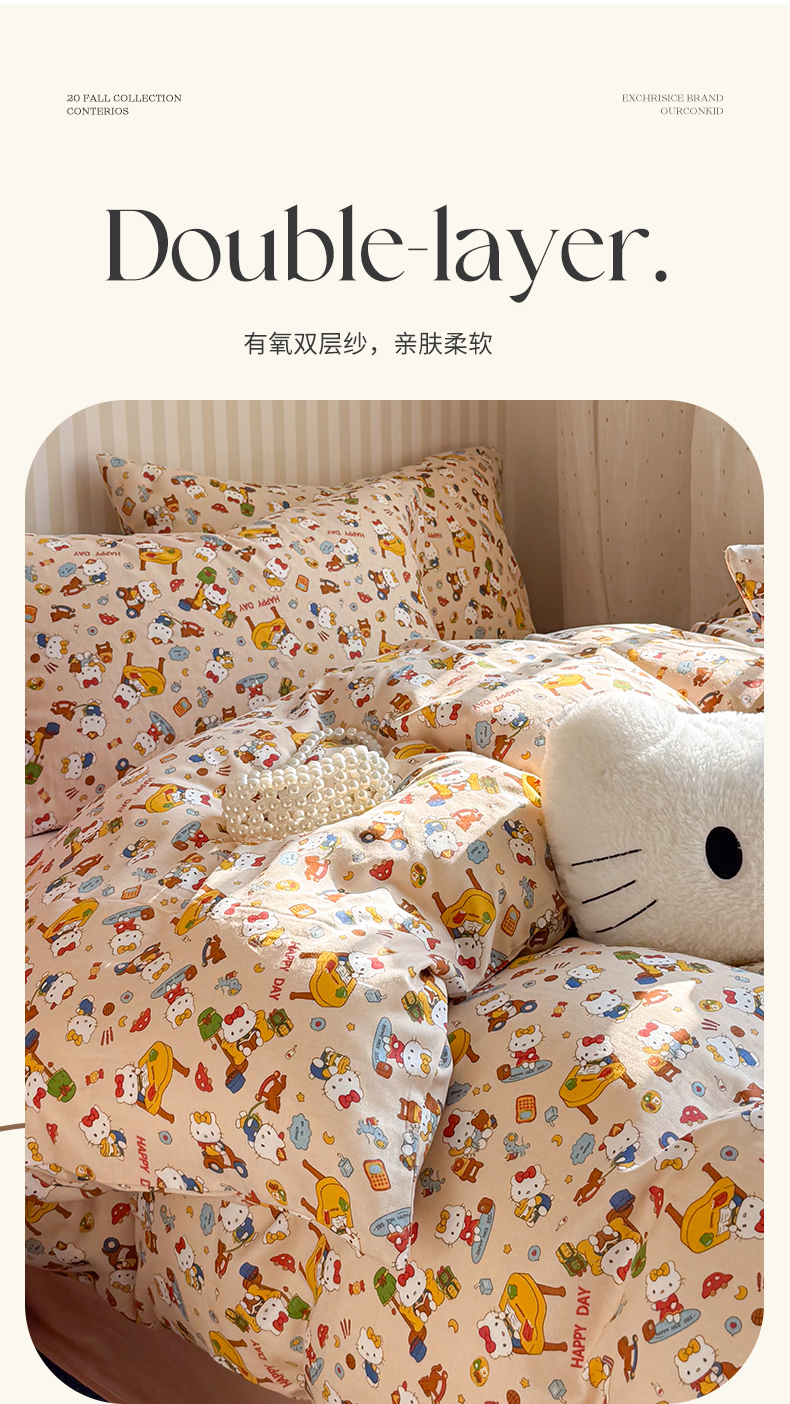 当前位置: 91家纺网 > 商品网购 > 床品套件 > 四件套 > 双层纱四件套 > 麦伦家居 2026春夏新品全棉有氧双层纱印花系列简约款四件套 KT乐园