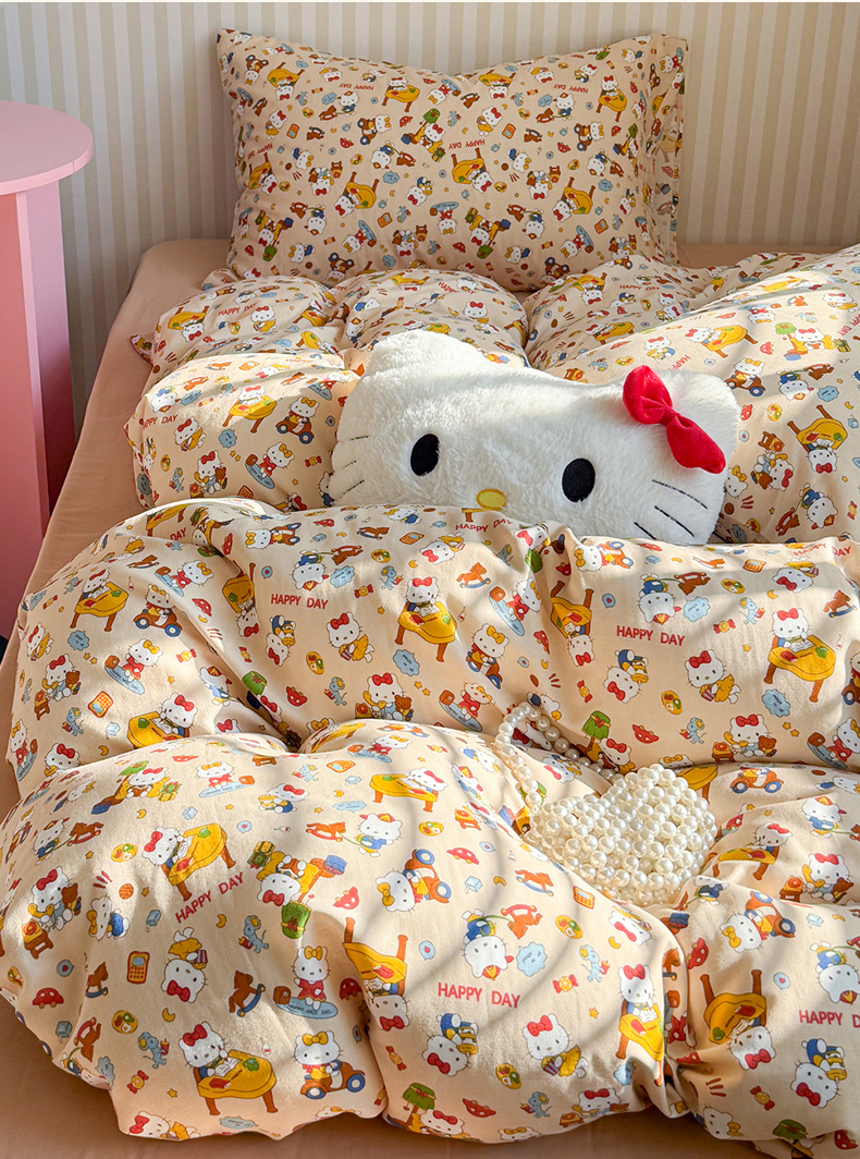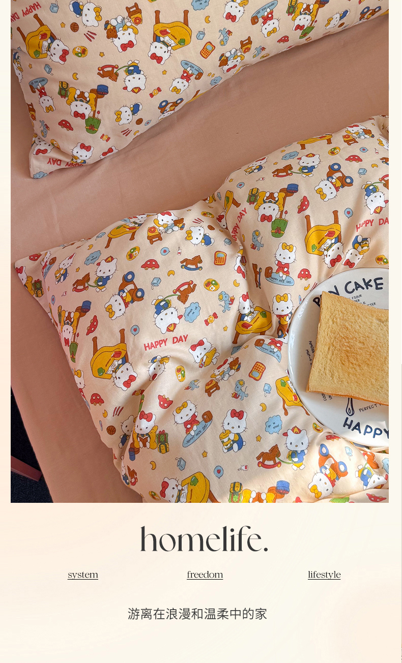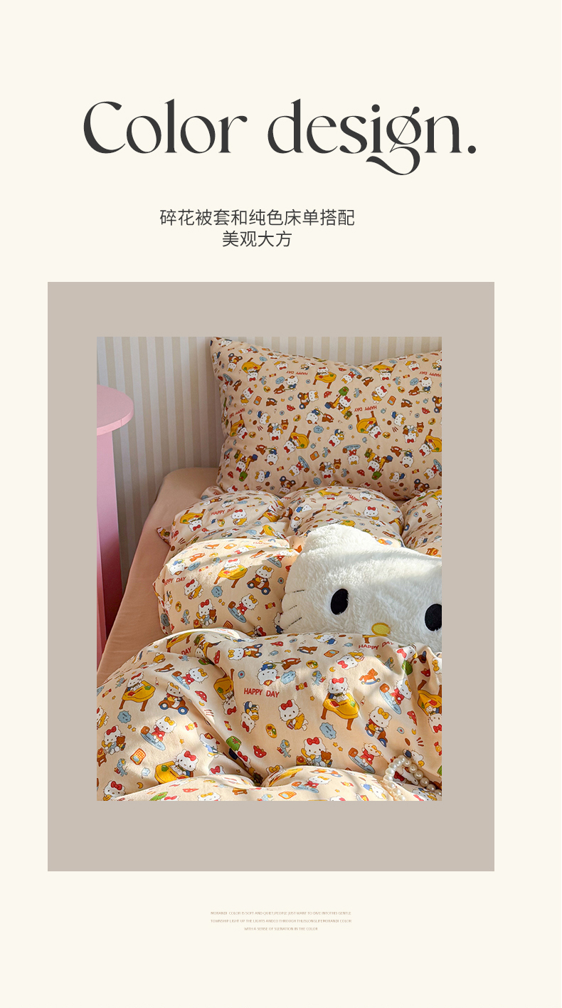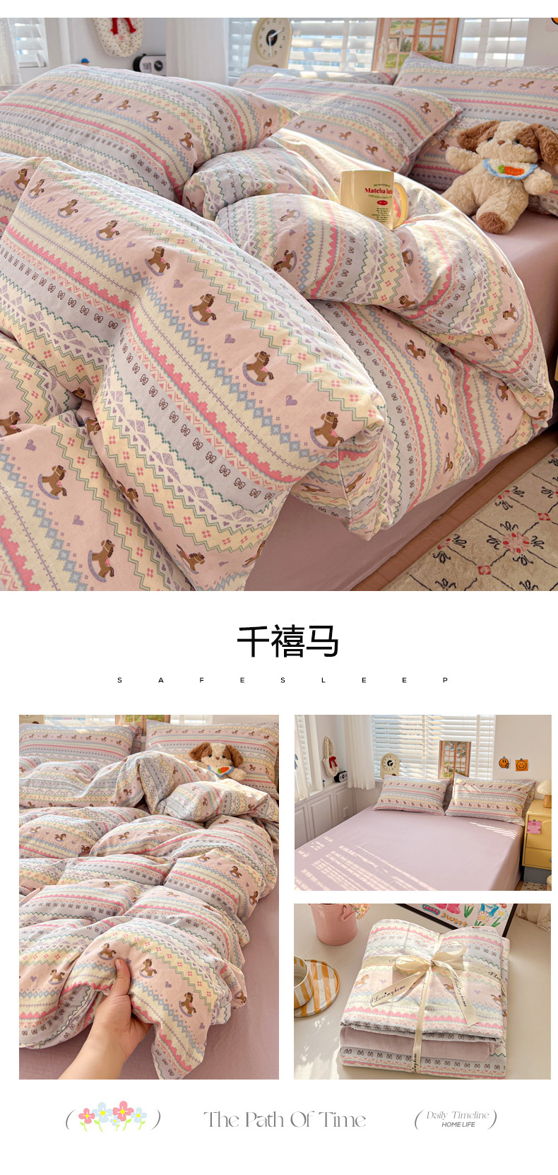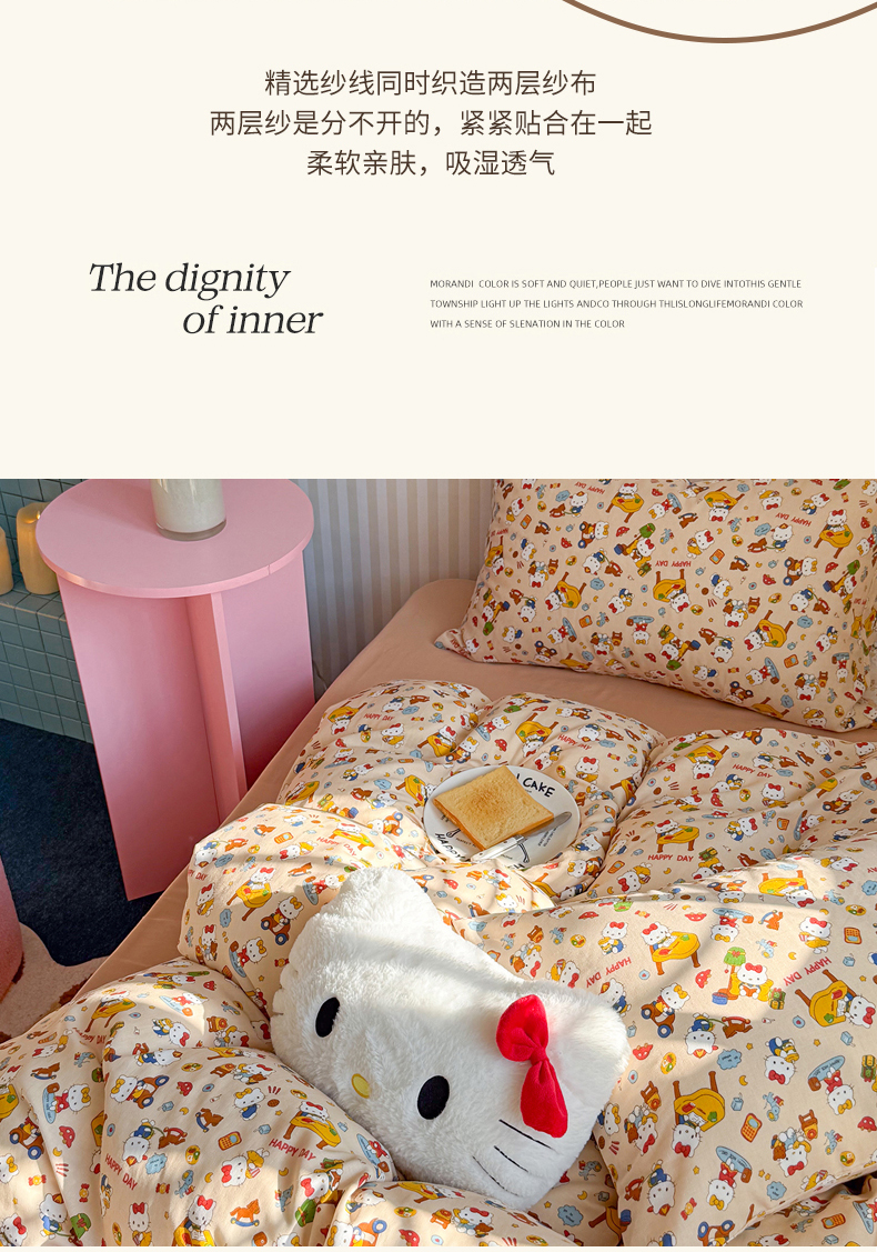 当前位置: 91家纺网 > 商品网购 > 床品套件 > 四件套 > 双层纱四件套 > 麦伦家居 2026春夏新品全棉有氧双层纱印花系列简约款四件套 KT乐园