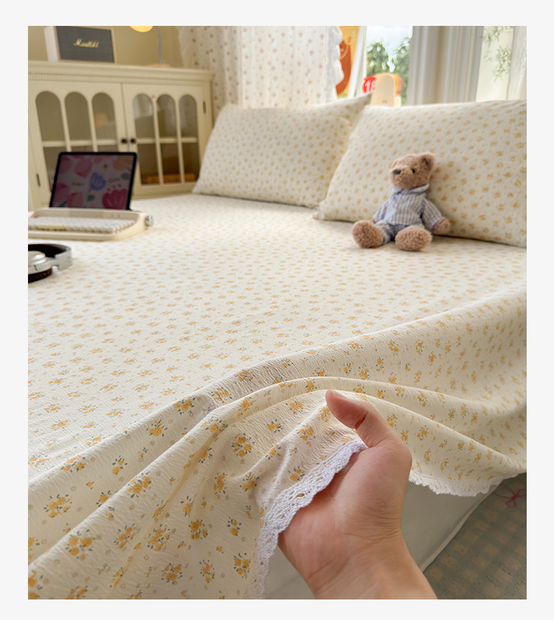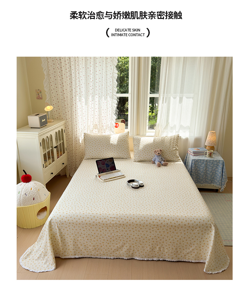 沐芷 2026 【提供买家秀】A类白花边床单单件 单人双人床单三件套 橘子海