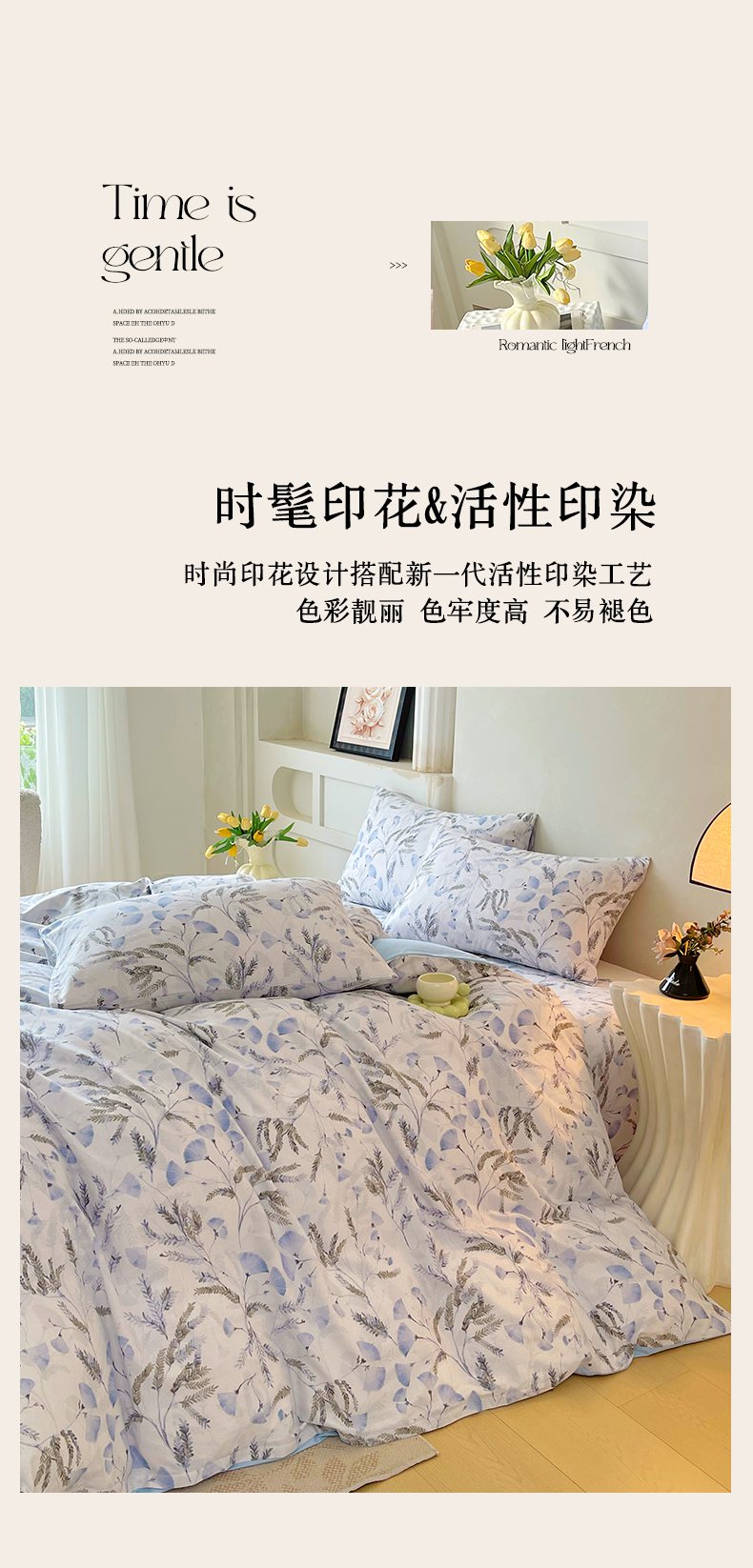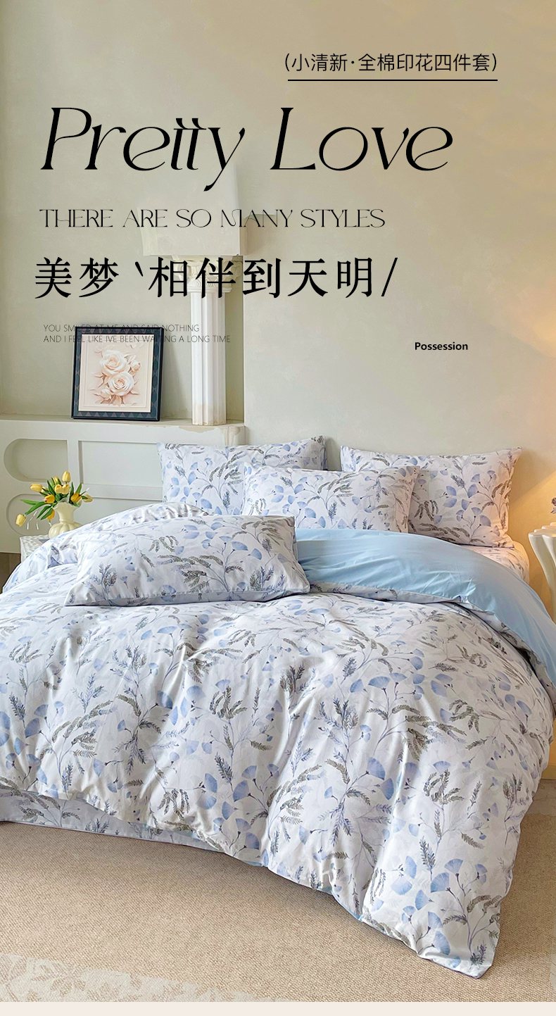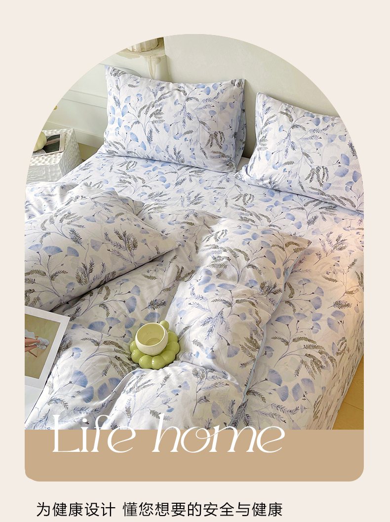 当前位置: 91家纺网 > 商品网购 > 床品套件 > 四件套 > 全棉普通四件套 > 金鑫汇家纺 2026新款全棉印花小清新四件套系列-可露丽 月下花影-蓝
