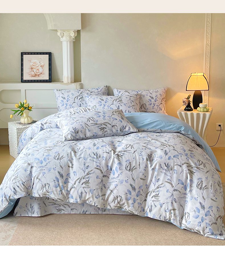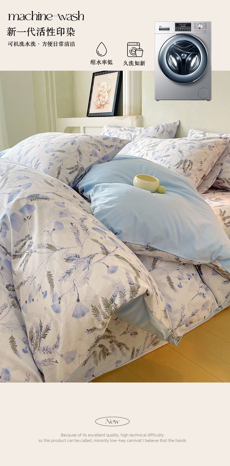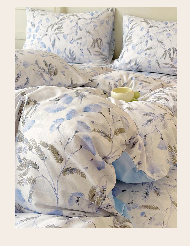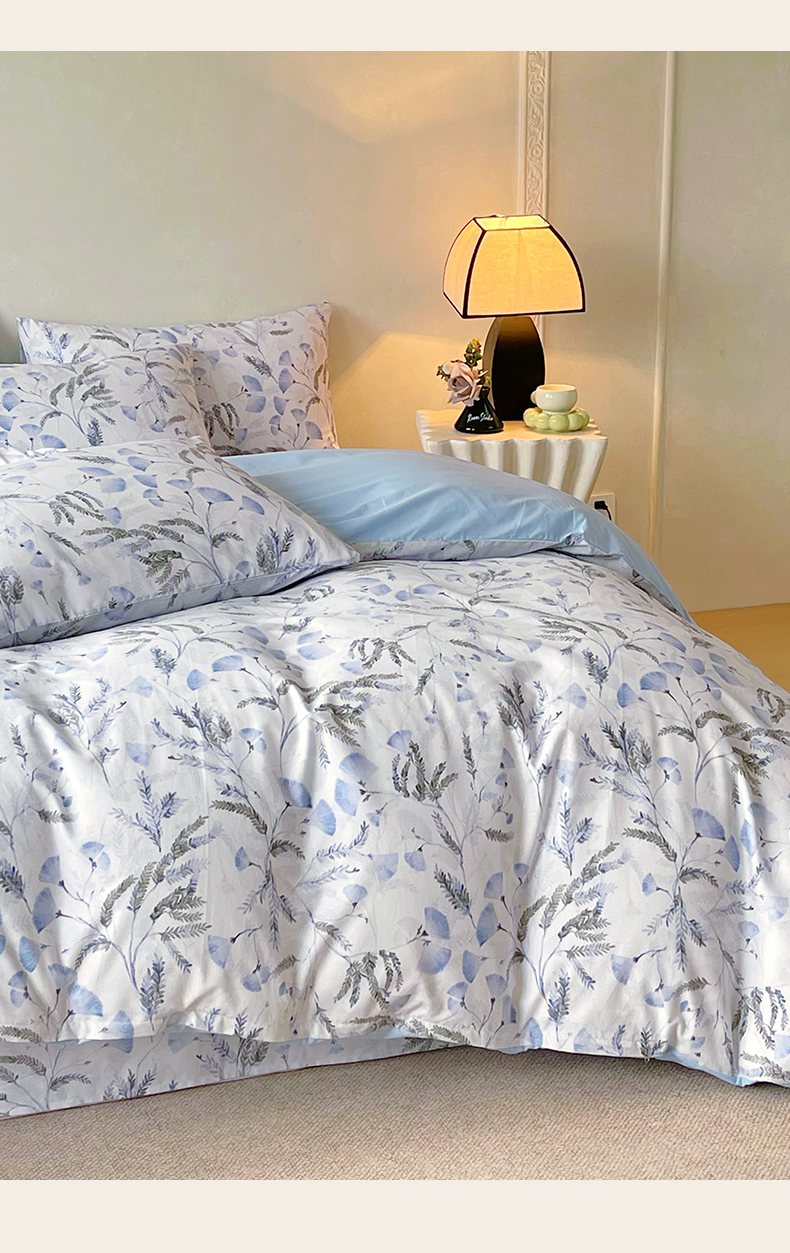 当前位置: 91家纺网 > 商品网购 > 床品套件 > 四件套 > 全棉普通四件套 > 金鑫汇家纺 2026新款全棉印花小清新四件套系列-可露丽 月下花影-蓝