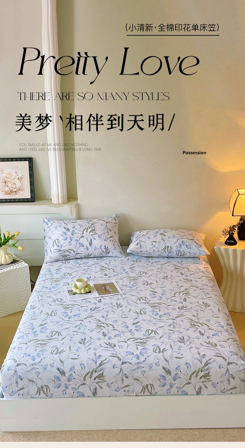 (总)金鑫汇家纺 2026新款全棉印花小清新单品床笠系列-可露丽,海盐可露丽,浅咖可露丽,浅绿可露丽,月下花影-桔,月下花影-蓝,月下花影-绿