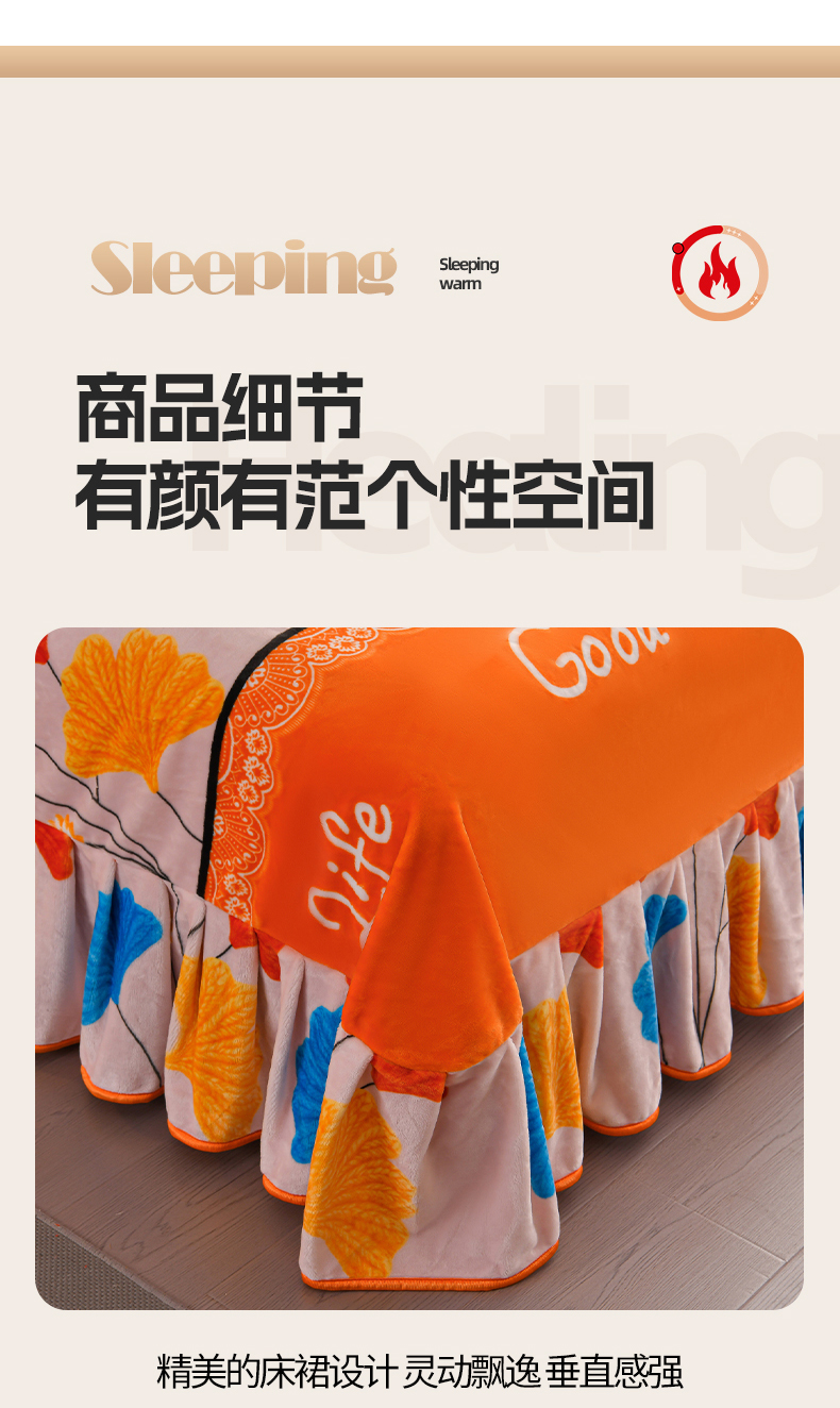 董成龙家纺 20256新款高克重9-10斤加厚印花超柔牛奶绒爆款法莱绒金貂绒床裙四件套控价 银杏花开