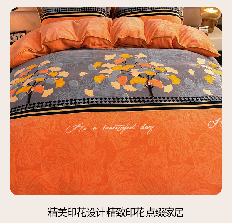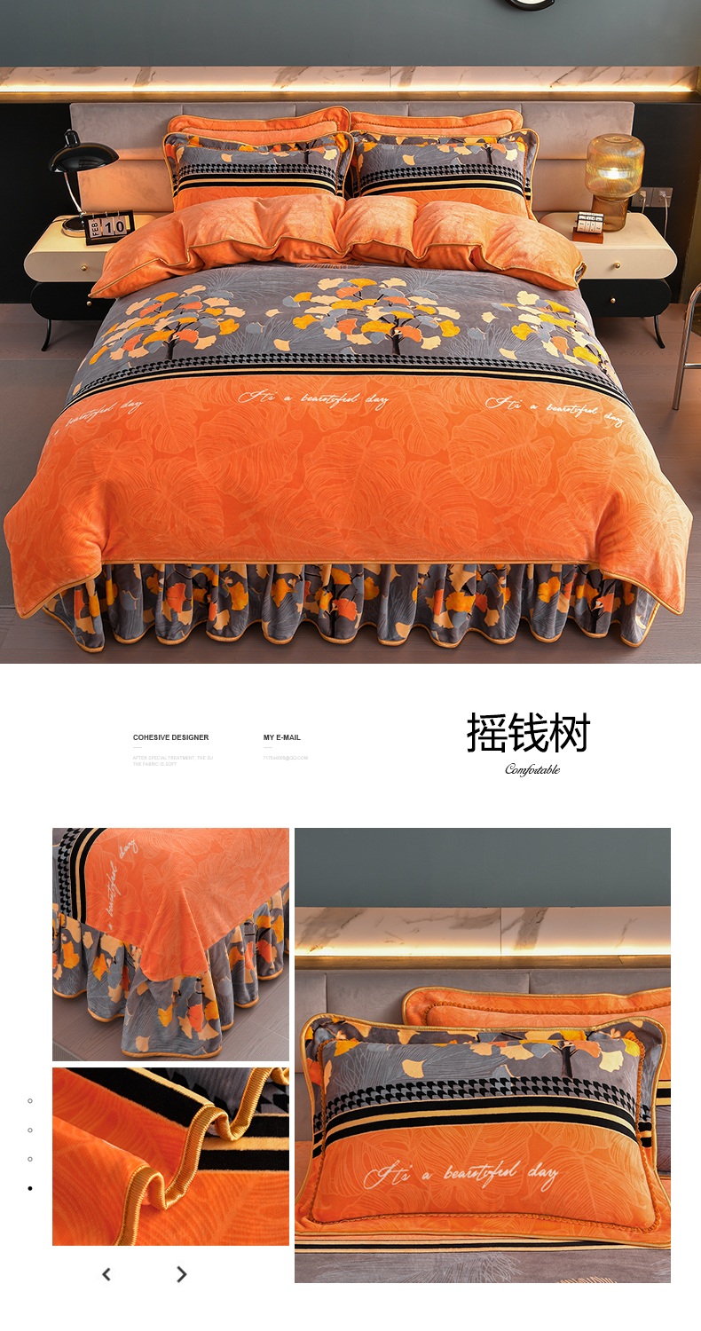商品名称:董成龙家纺 20256新款高克重9-10斤加厚印花超柔牛奶绒爆款法莱绒金貂绒床裙四件套控价 摇钱树