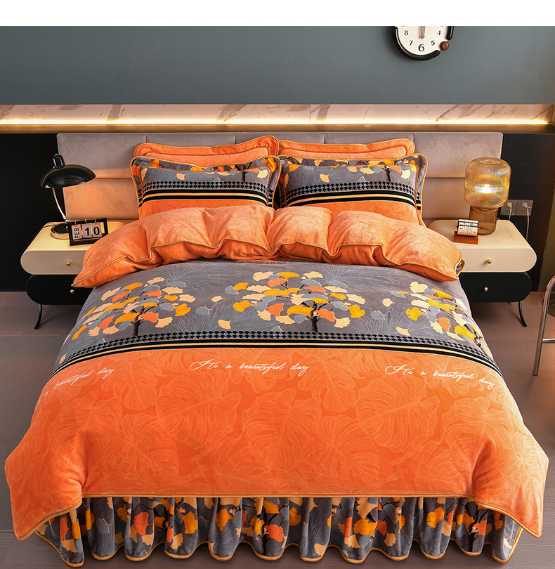 董成龙家纺 20256新款高克重9-10斤加厚印花超柔牛奶绒爆款法莱绒金貂绒床裙四件套控价 摇钱树