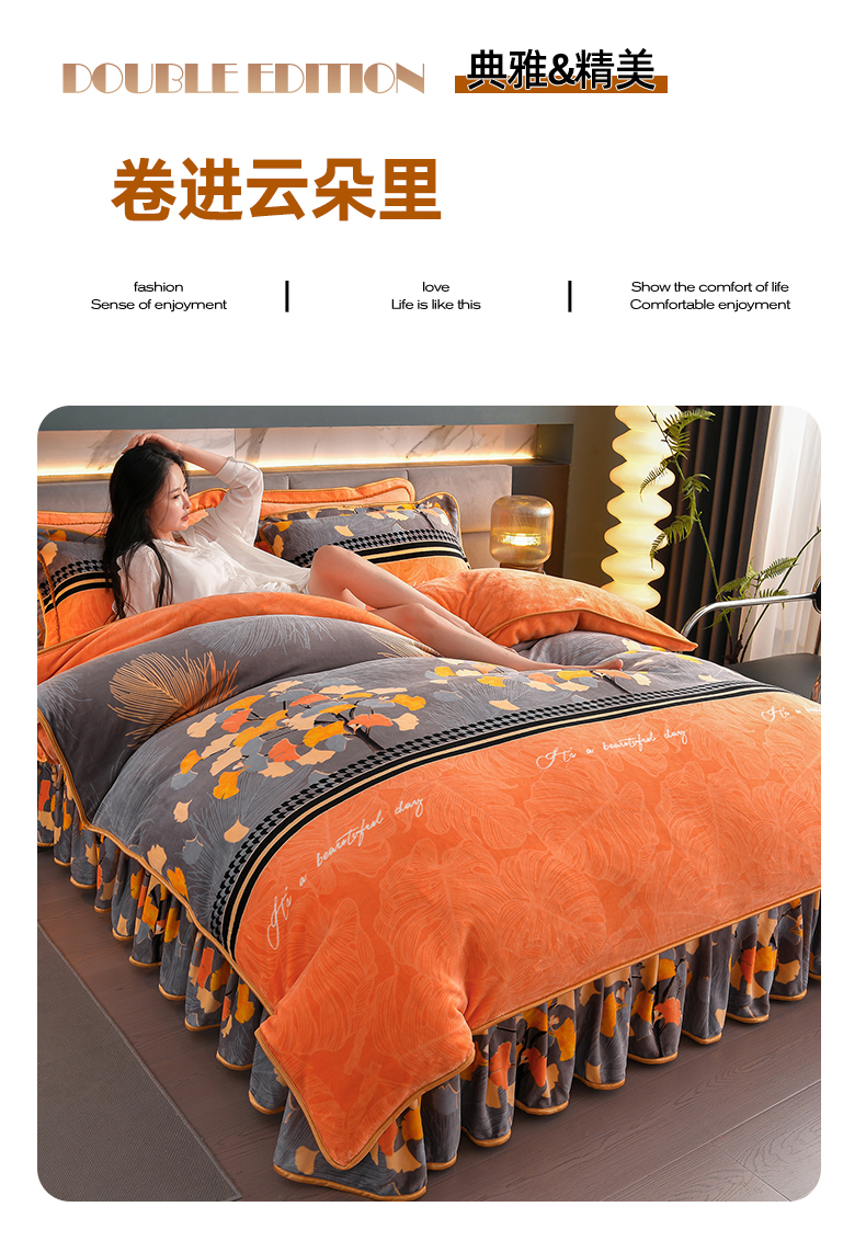 (总)董成龙家纺 2026新款高克重9-10斤加厚印花超柔牛奶绒爆款法莱绒金貂绒床裙四件套控价,富贵吉祥,称心如意,爱意满满,繁花,嫣然一笑,金色年华,春华秋实,吉祥如意,林间鹿语,快乐时光,钟爱一生,欢乐猫,金玉满堂,金枝玉叶,休闲时光,摇钱树,格调,一鹿有你,美满生活,黄金叶,蝶梦,萌萌兔,英伦风尚,花韵,银杏花开,温婉佳人,幸运绒趣,恐龙乐园,蝶舞