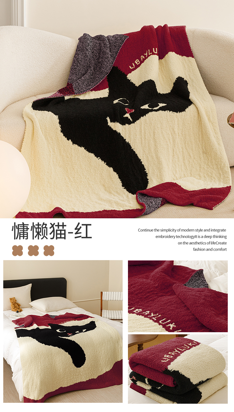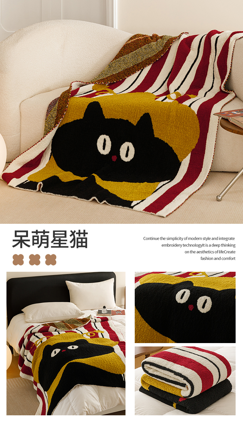 (总)瑞米家居 2026新款多功能半边绒盖毯毛毯毯子,呆萌星猫,朵朵绒,惊喜,空白格,奶huhu,暖fufu,慵懒猫-红,慵懒喵-黄,组合图仅供参考不可下单