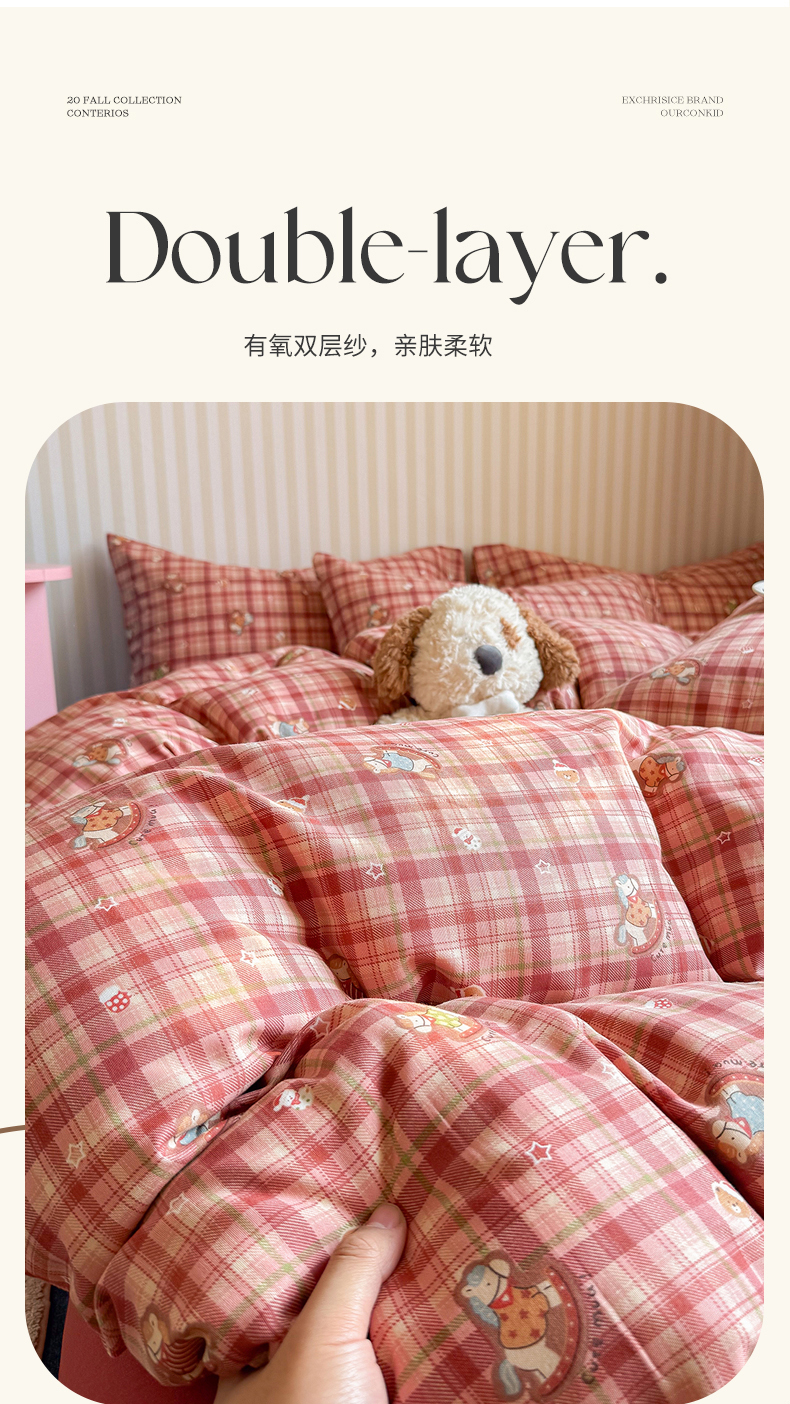 当前位置: 91家纺网 > 商品网购 > 床品套件 > 四件套 > 全棉普通四件套 > 麦伦家居 2026年春夏新款全棉纯棉有氧双层纱印花四件套-第二波 木马乐园