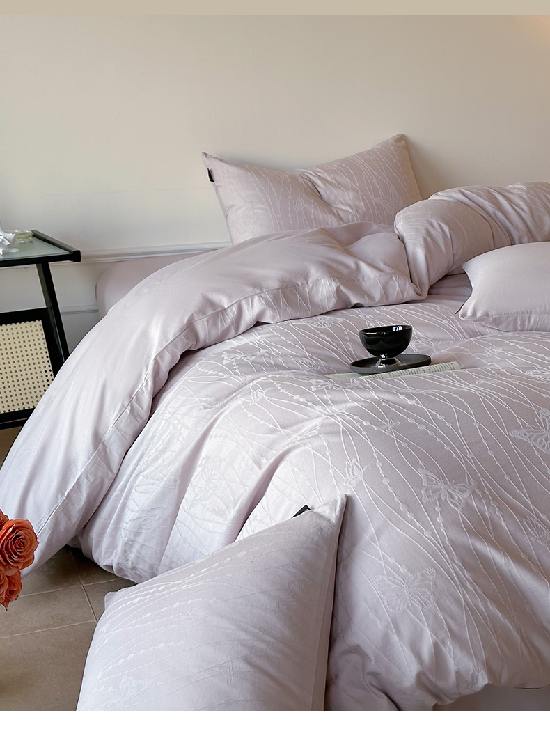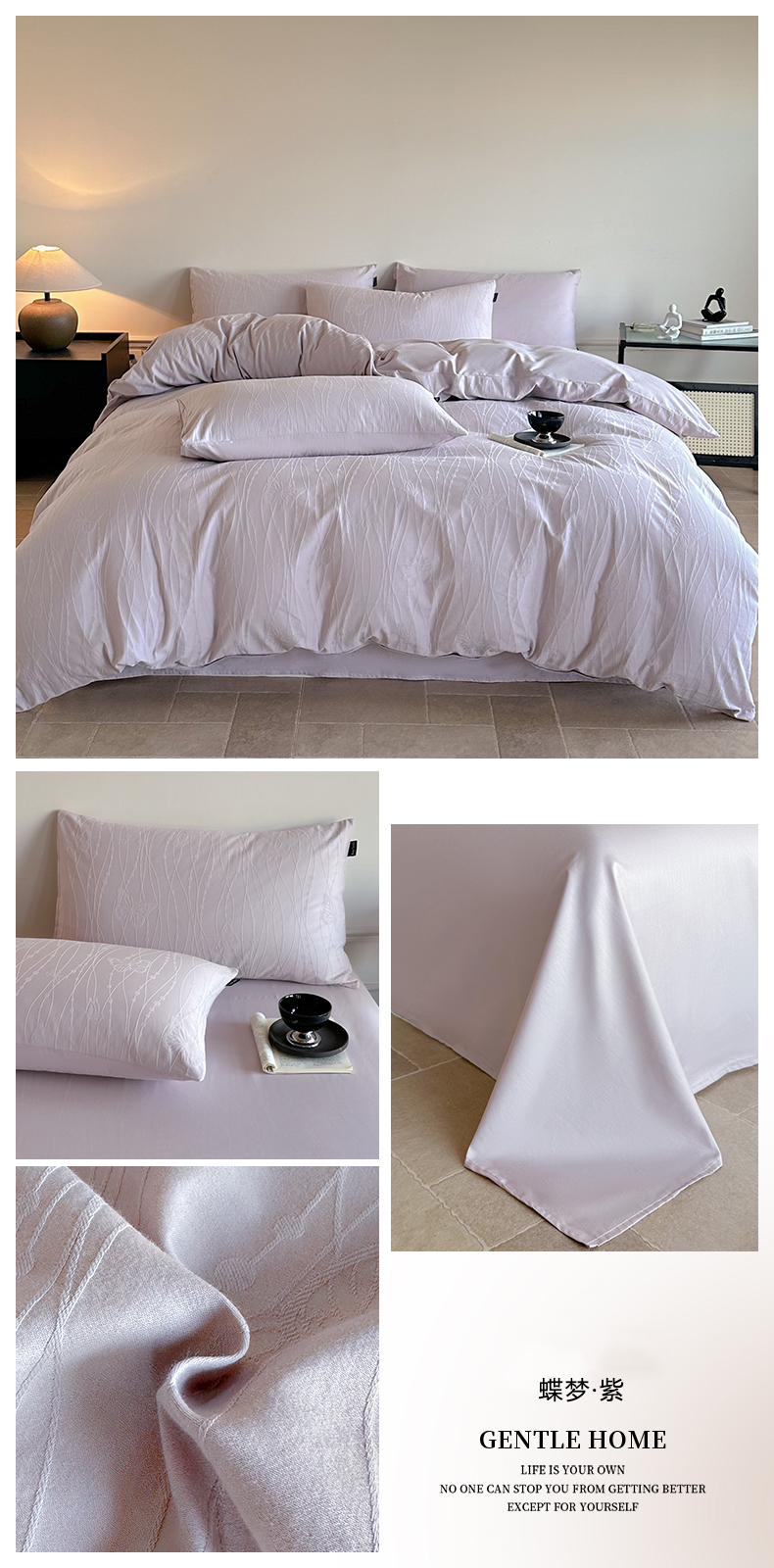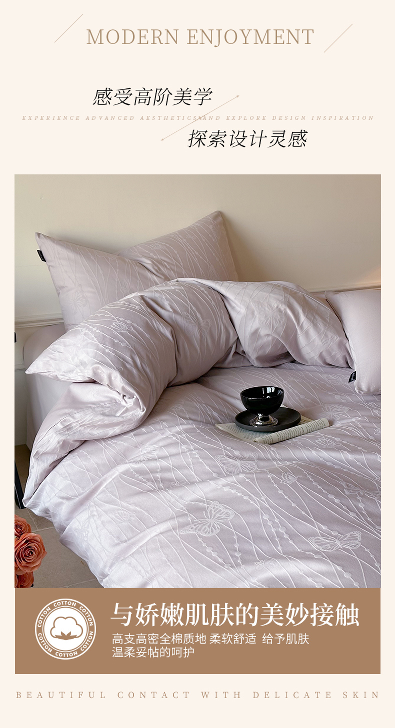 卧趣家纺 2026新款A类60S贡缎提花全棉四件套 蝶梦-紫