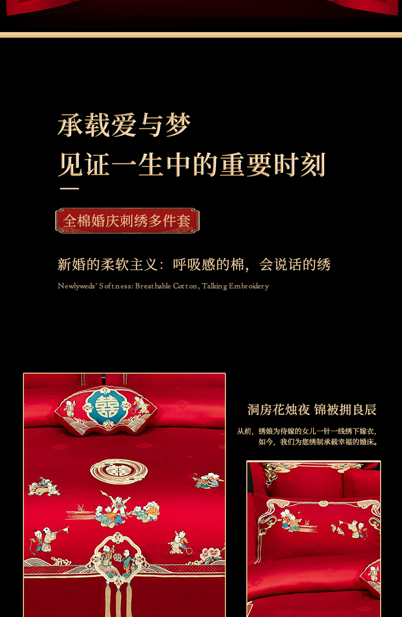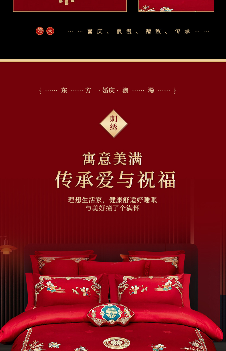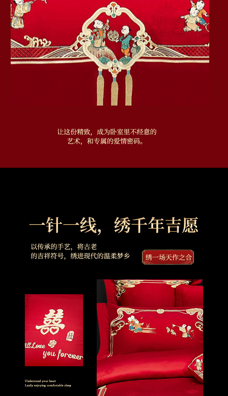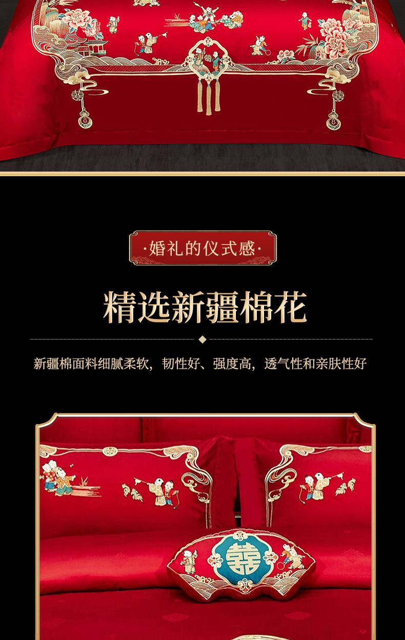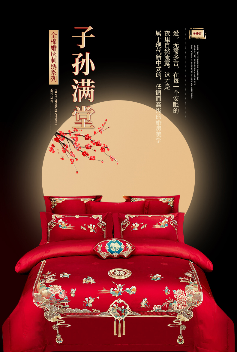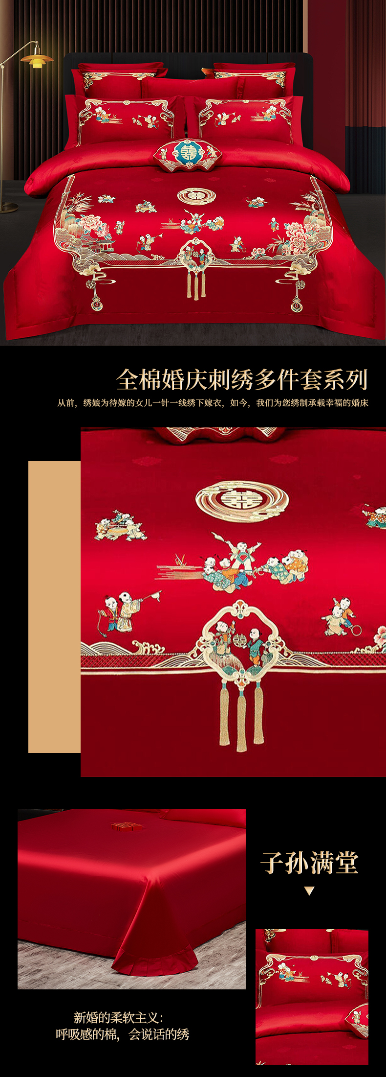 当前位置: 91家纺网 > 商品网购 > 床品套件 > 四件套 > 婚庆四件套 > 浩情国际婚庆供货中心 2026新款100%全棉长绒棉纯棉婚庆四件套结婚刺绣六件套多件套长期供货 (提供买家秀) 子孙满堂