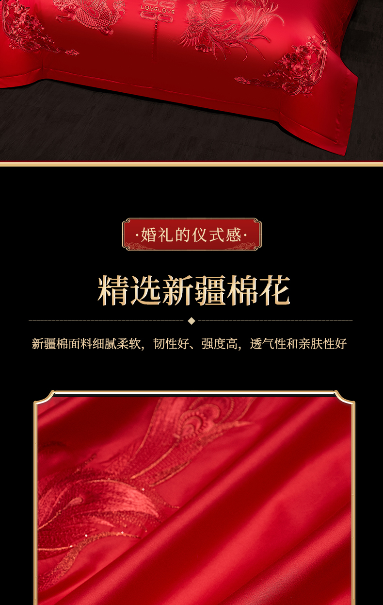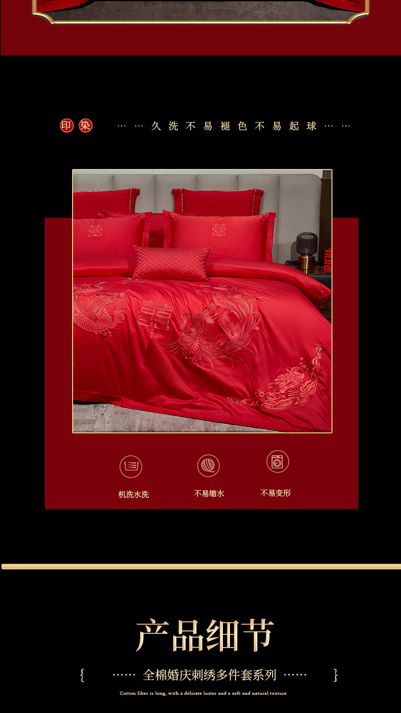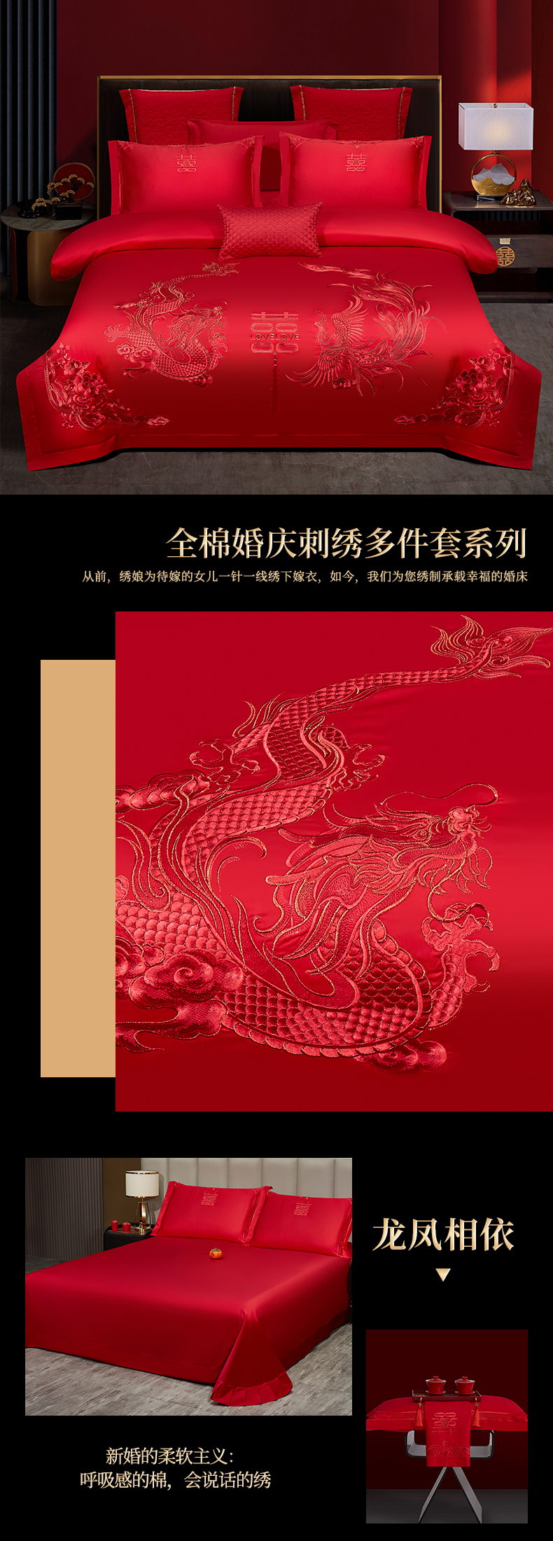 当前位置: 91家纺网 > 商品网购 > 床品套件 > 四件套 > 婚庆四件套 > 浩情国际婚庆供货中心 2026新款100%全棉长绒棉纯棉婚庆四件套结婚刺绣六件套多件套长期供货 (提供买家秀) 龙凤相依