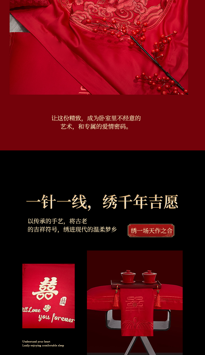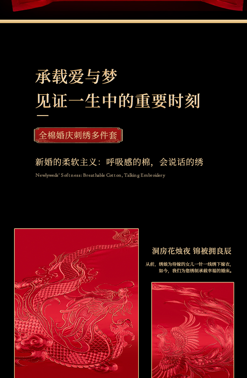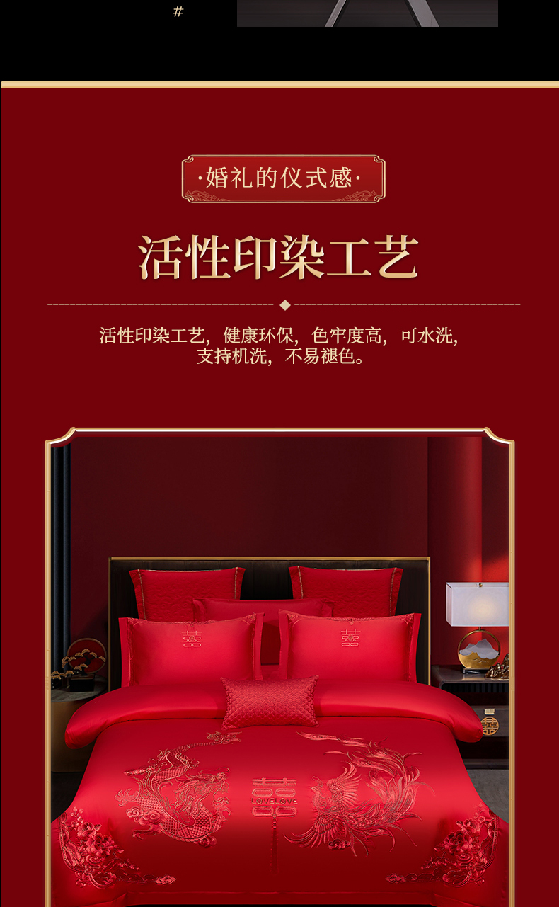 当前位置: 91家纺网 > 商品网购 > 床品套件 > 四件套 > 婚庆四件套 > 浩情国际婚庆供货中心 2026新款100%全棉长绒棉纯棉婚庆四件套结婚刺绣六件套多件套长期供货 (提供买家秀) 龙凤相依