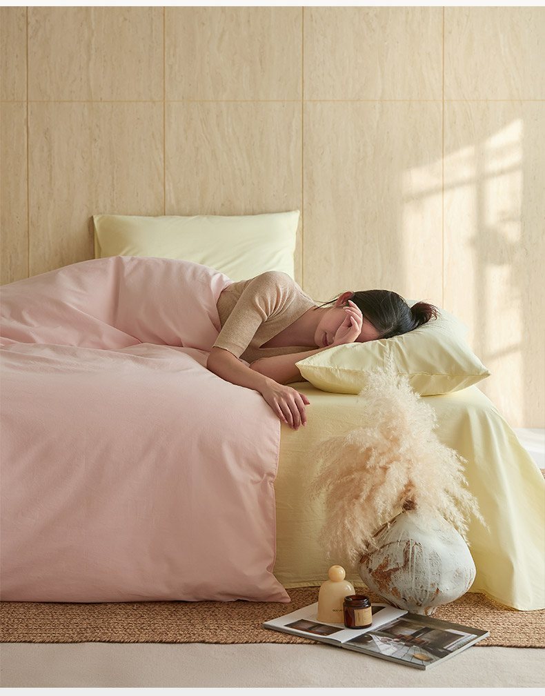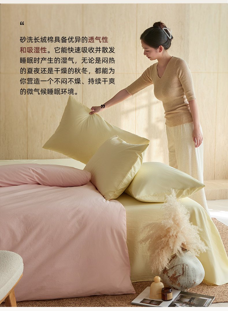 (总)轩和家居 2025新款全棉高支旧感砂洗长绒棉四件套,薄樱粉,淡黄色,暮烟灰,墨染灰,落栗棕,霁兰色,豆沙色,浅云白,青绿色,秋麦色,松石绿,天空蓝,雾海蓝,细雨灰