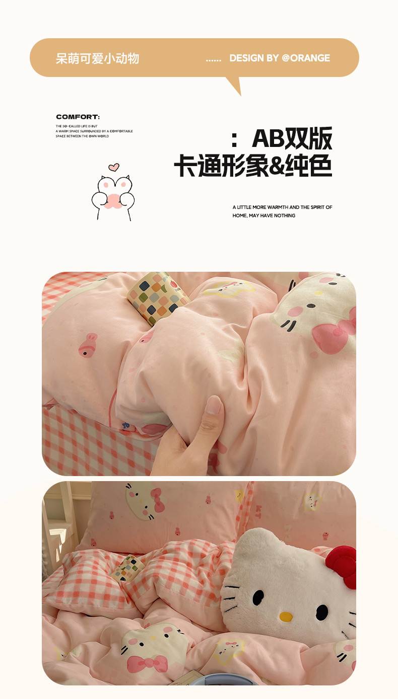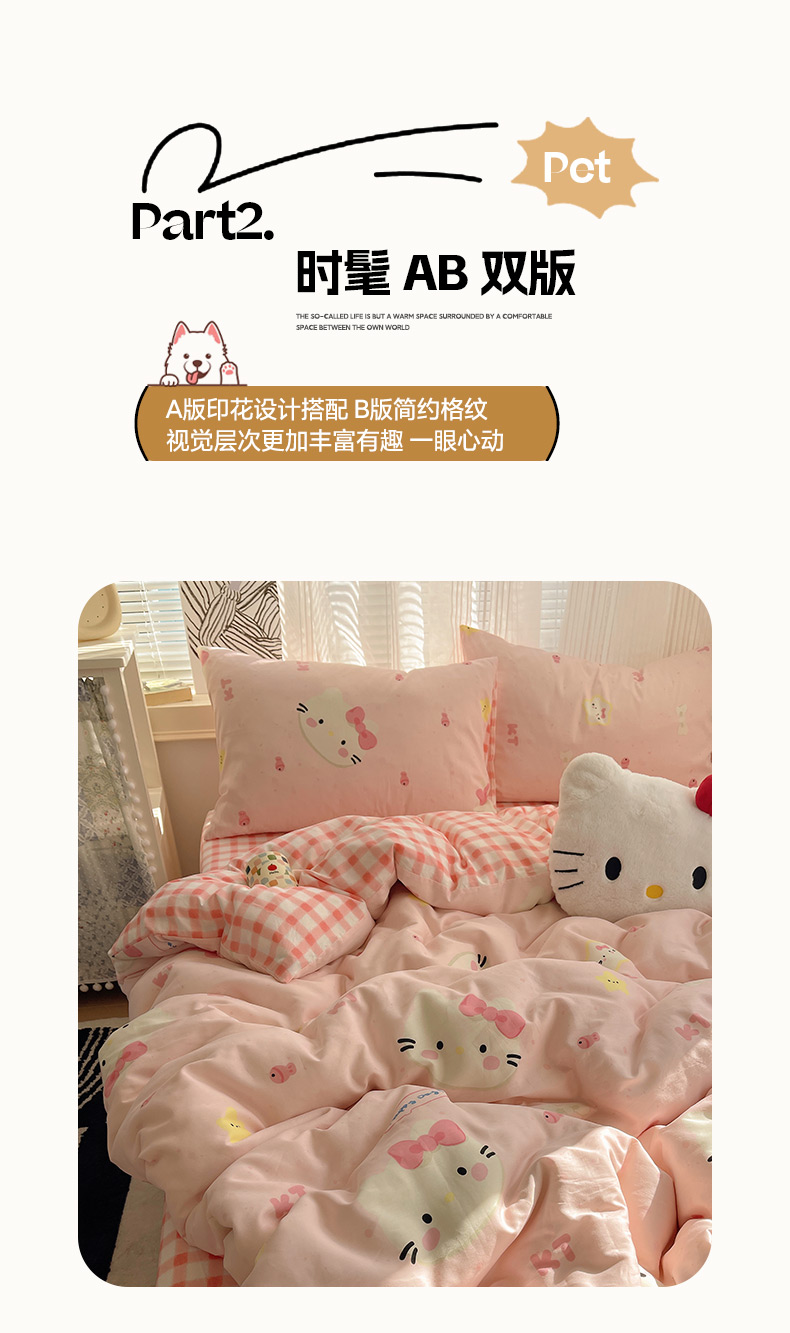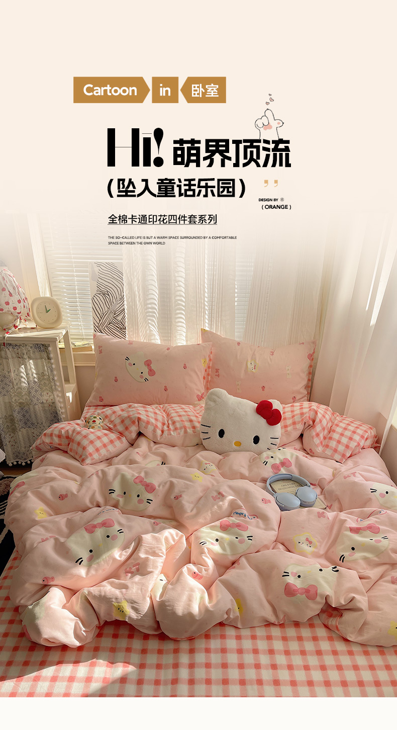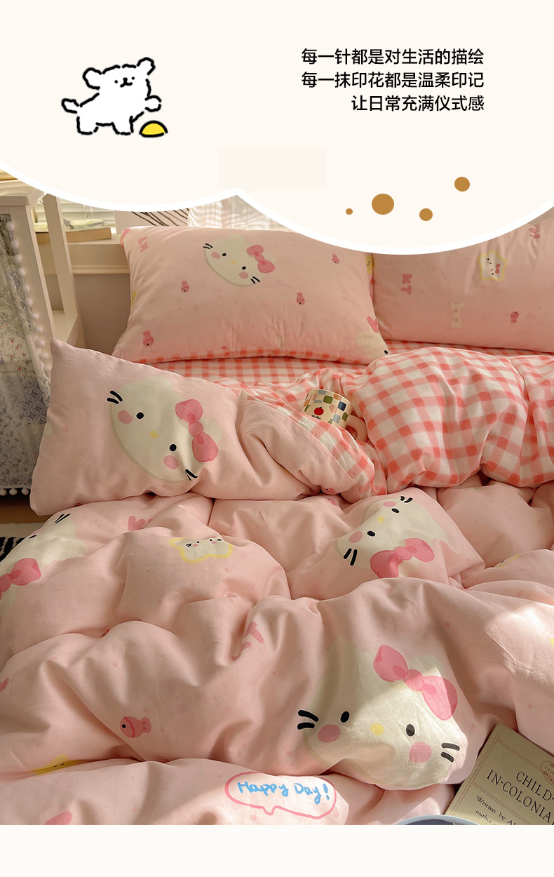(总)雅居纺家纺 2026新款全棉卡通印花可爱小猫四件套,快乐小猫,爱心小猫,粉点猫咪,假日小猫,菱形格猫咪,猫咪伙伴