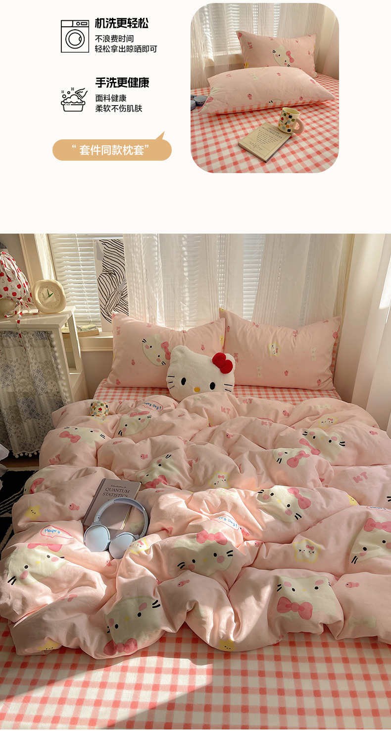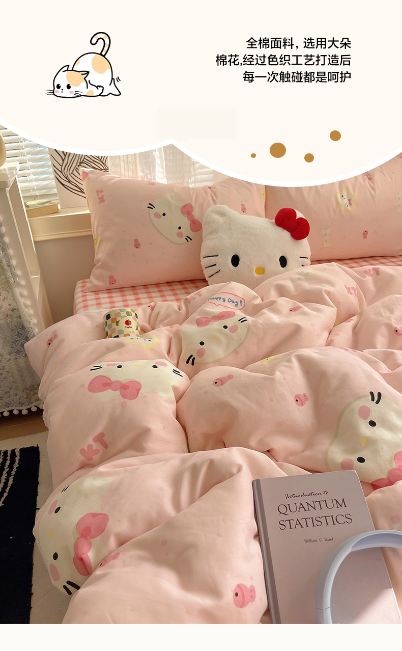 商品名称:雅居纺家纺 2026新款全棉卡通印花可爱小猫四件套 快乐小猫