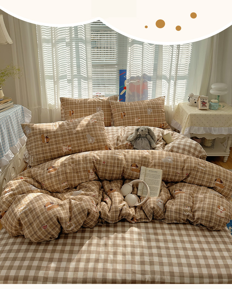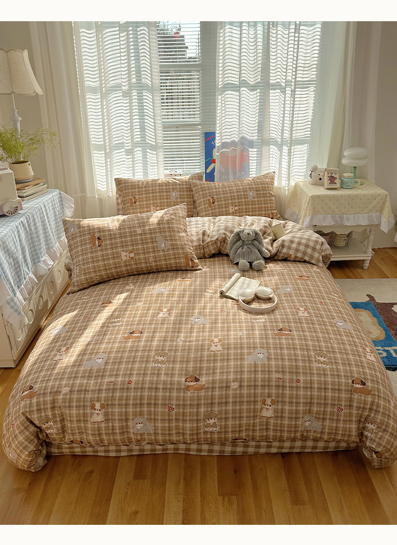 (总)雅居纺家纺 2022新款13070全棉印花四件套,草莓蝴蝶结,俄罗斯方块,黑白蝴蝶结,很嗨兔,可爱小兔,快乐花海,牛奶纹,胖胖鸭,棋盘格,日月争辉,西部恐龙,小情调,小桃桃