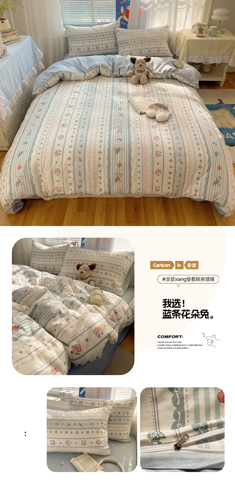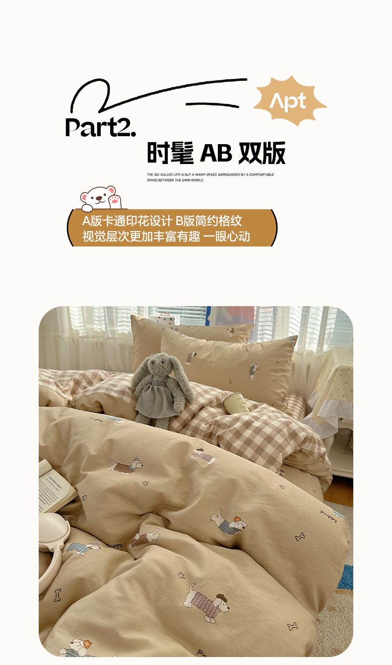 (总)雅居纺家纺 2026新款全棉小清新印花四件套,HI小狗,暴富,草莓蓝花,粉色熊熊,红红火火,简笔画小兔,蓝条花朵兔,绿色小兔,森林乐园,绅士快乐狗,贪睡猫猫,贪玩家族,贪玩小兔兔,祥瑞,小黑猫咪,幸福花朵,幸福兔-蓝,熊熊小汽车,紫色千鸟格