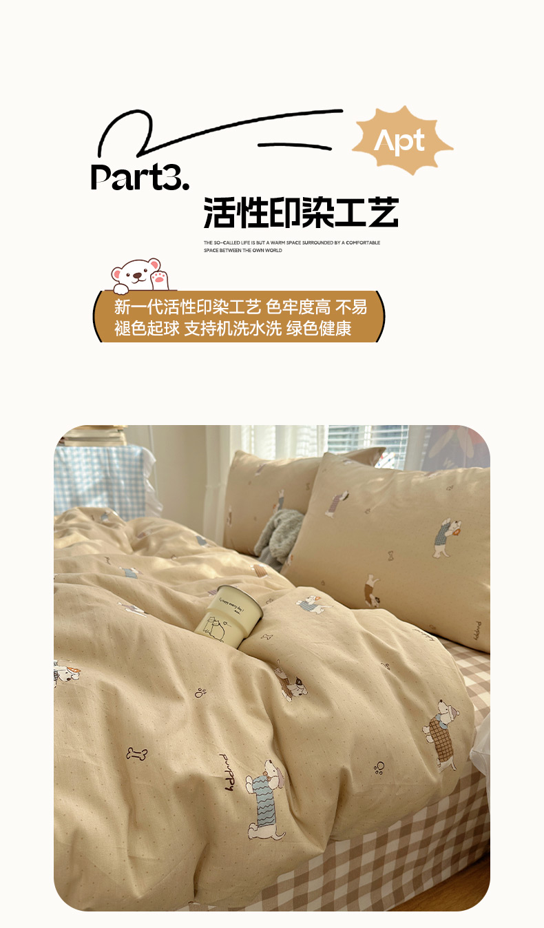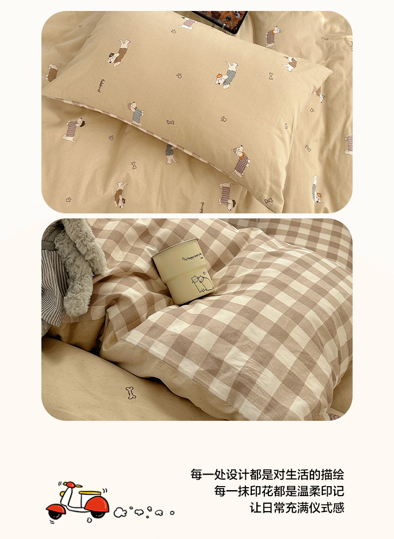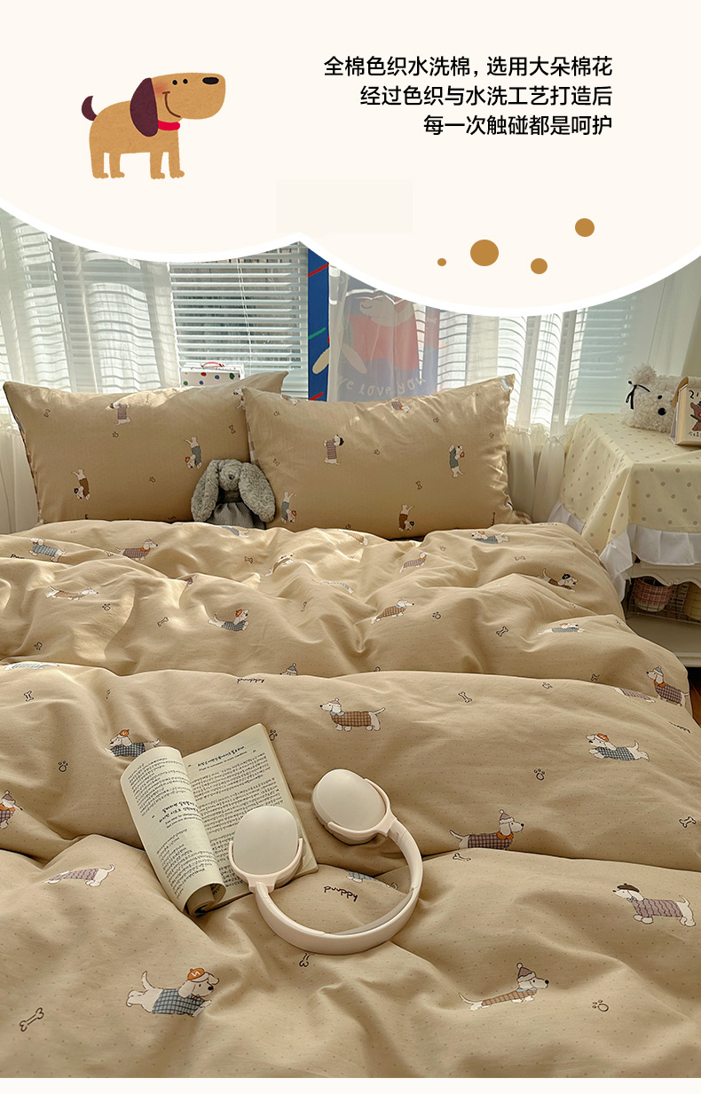 雅居纺家纺 2026新款全棉小清新印花四件套 绅士快乐狗