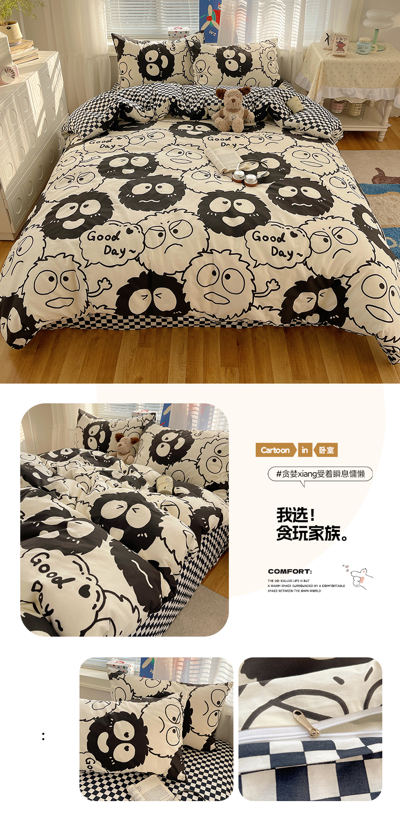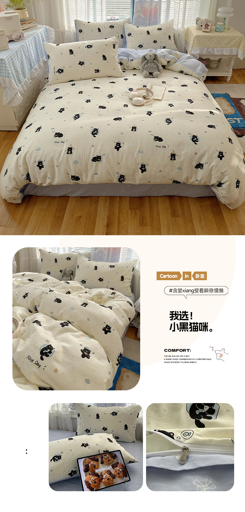 (总)雅居纺家纺 2026新款全棉卡通印花可爱小猫四件套,快乐小猫,爱心小猫,粉点猫咪,假日小猫,菱形格猫咪,猫咪伙伴